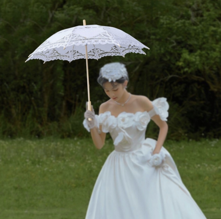- ЕЛЕГАНТНА ВІНТАЖНА ЗОВНІШНІСТЬ – класична біла парасолька зі складним мереживом відсилає до вікторіанського стилю. Це не тільки практичний аксесуар, а й унікальна прикраса, що підкреслює урочистість заходу.