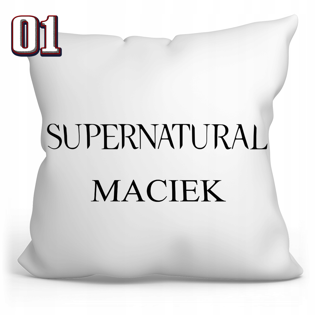 Подушка 40x40 з принтом - SUPERNATURAL + можливість друку імені або іншого тексту на виробі входить у вартість.