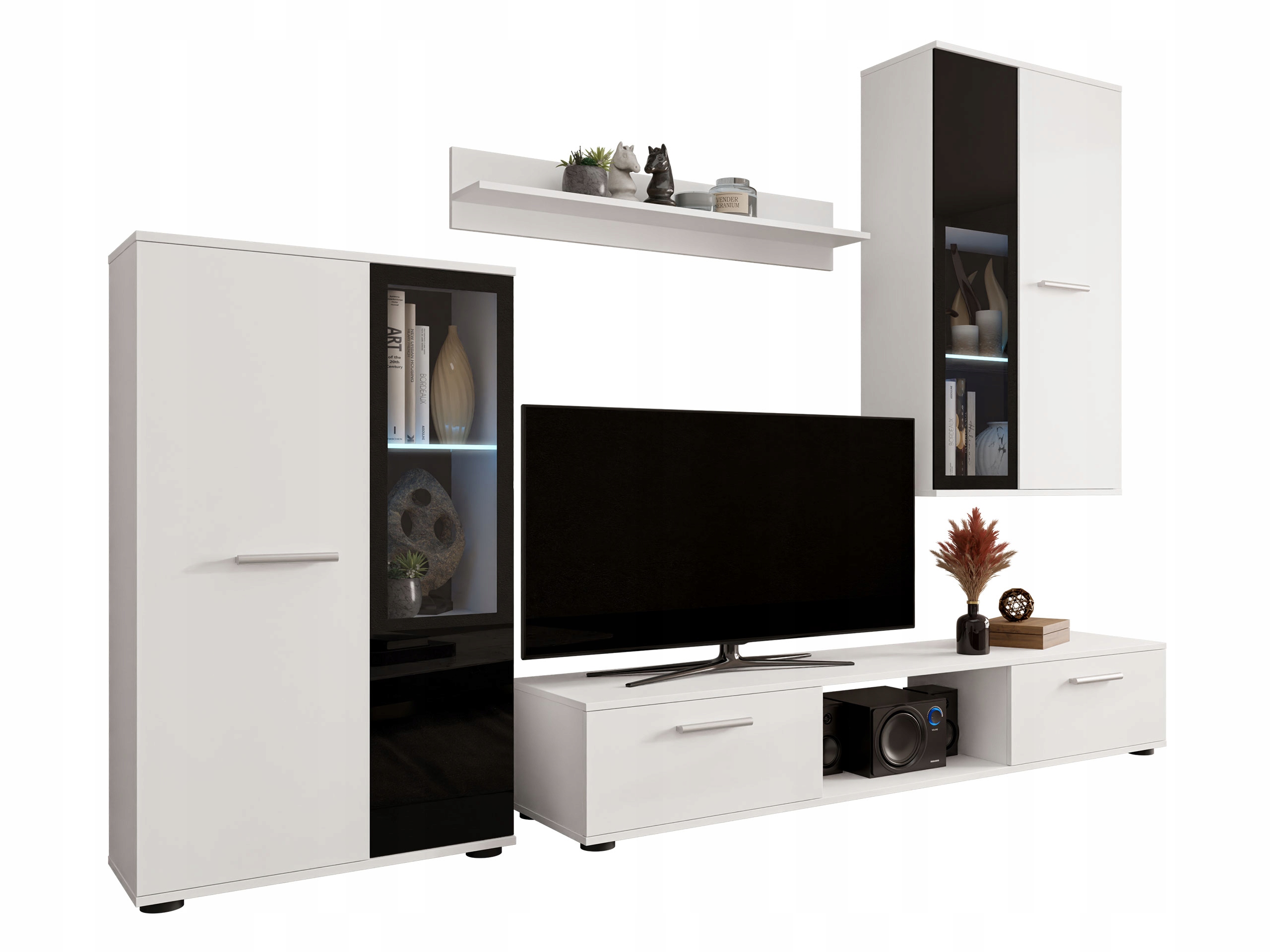 Представлений набір меблів - це поєднання сучасного стилю та функціональності. Настінний блок стане чудовим місцем для обладнання RTV та декоративних елементів.