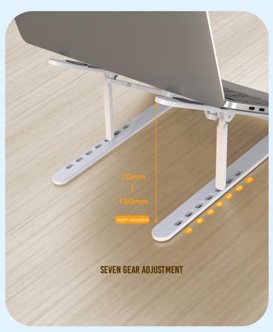 ➡️ Крім того, підставка забезпечує краще охолодження ноутбука. Піднімаючи пристрій над поверхнею столу, він забезпечує кращий потік повітря, що подовжує термін служби ноутбука та запобігає перегріванню компонентів.