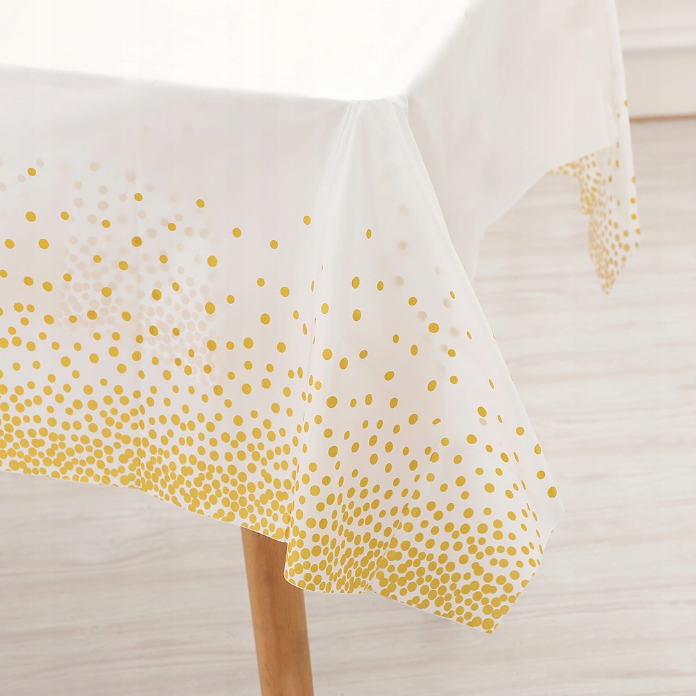 Біла пластикова скатертина з золотими крапками на один день народження для таблиці 137x274