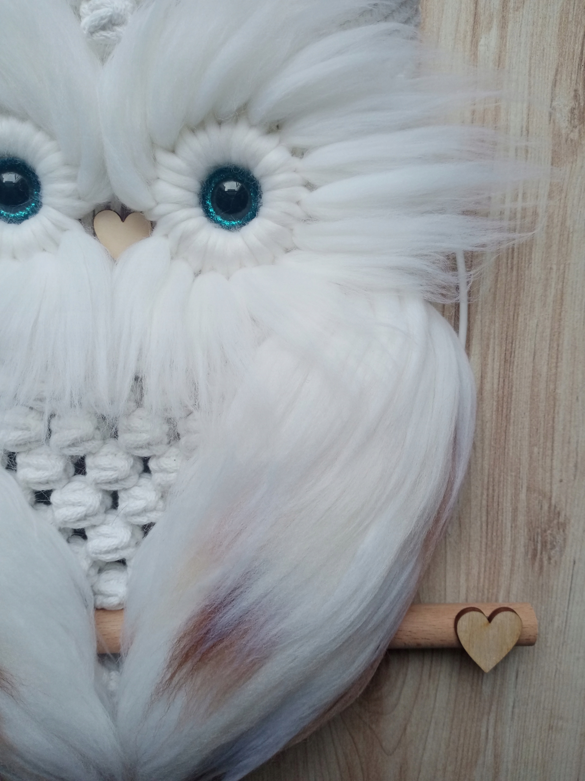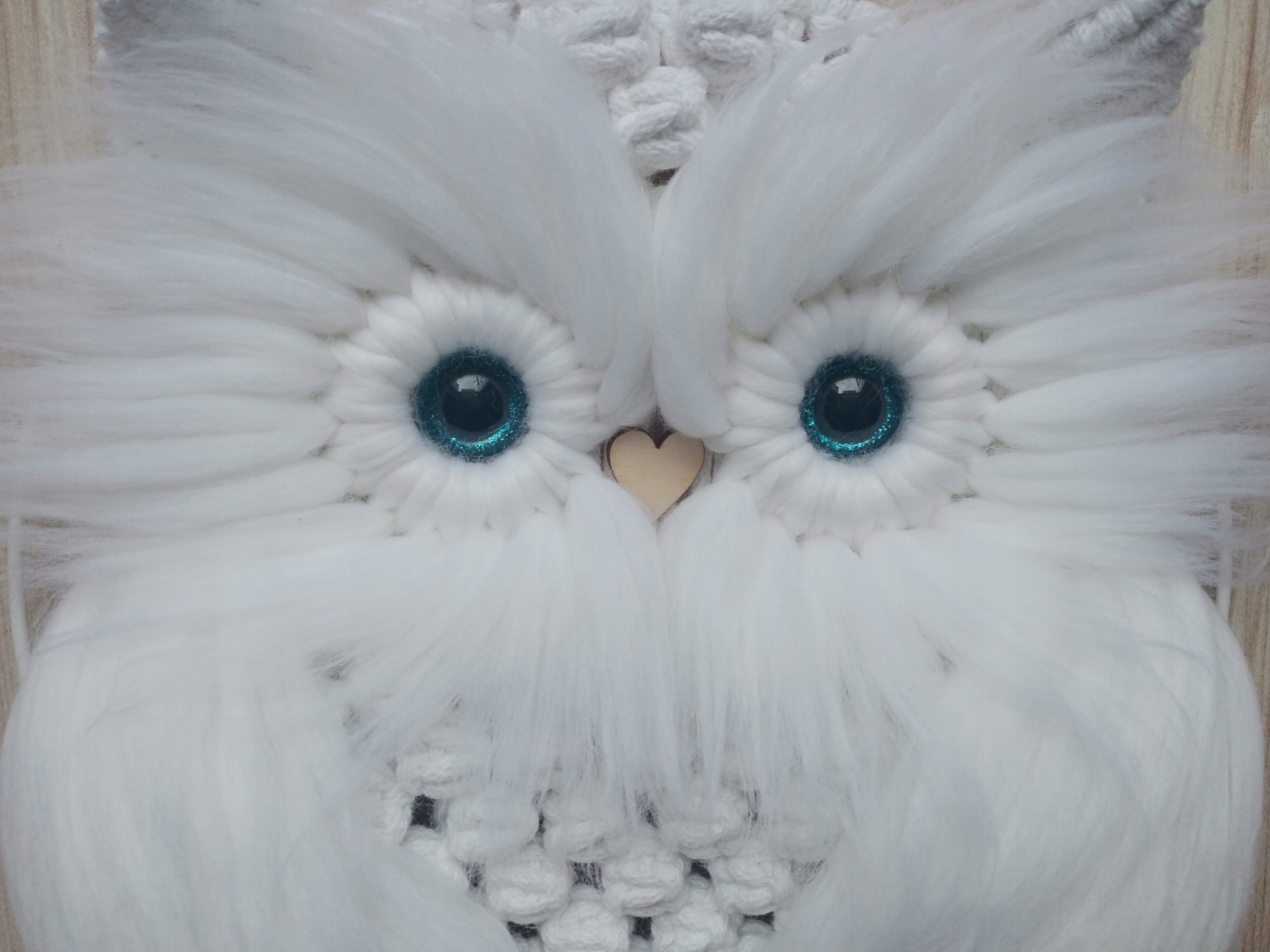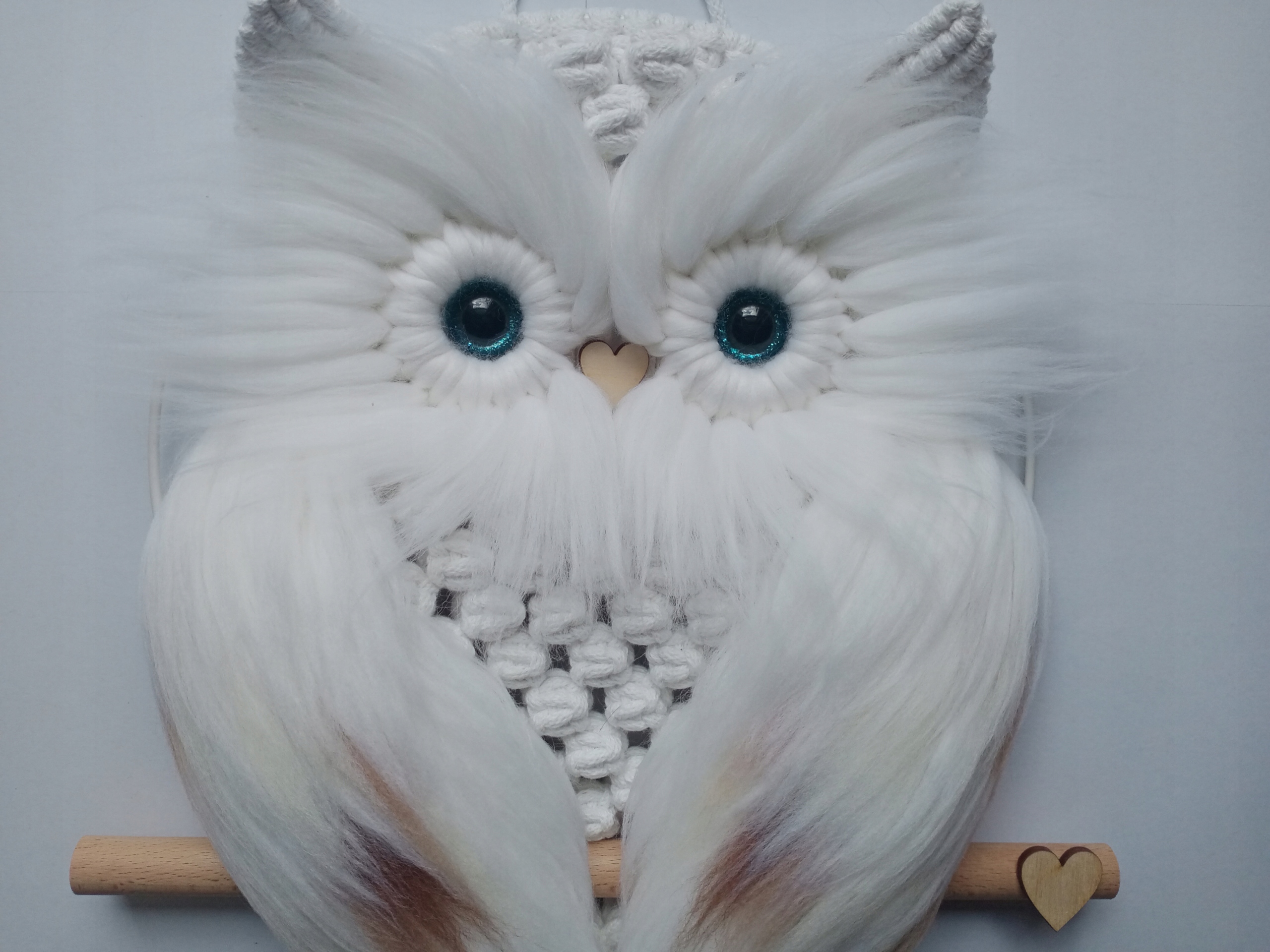 Сова 100% ручної роботи в Польща, з Китаю не привезена. Струни від польського виробника струн. Через ручну роботу можливі невеликі відмінності в розмірах і плетінні. Відтінок струни та вовни на фотографіях може дещо відрізнятися від оригіналу - це пов'язано з налаштуваннями монітора.