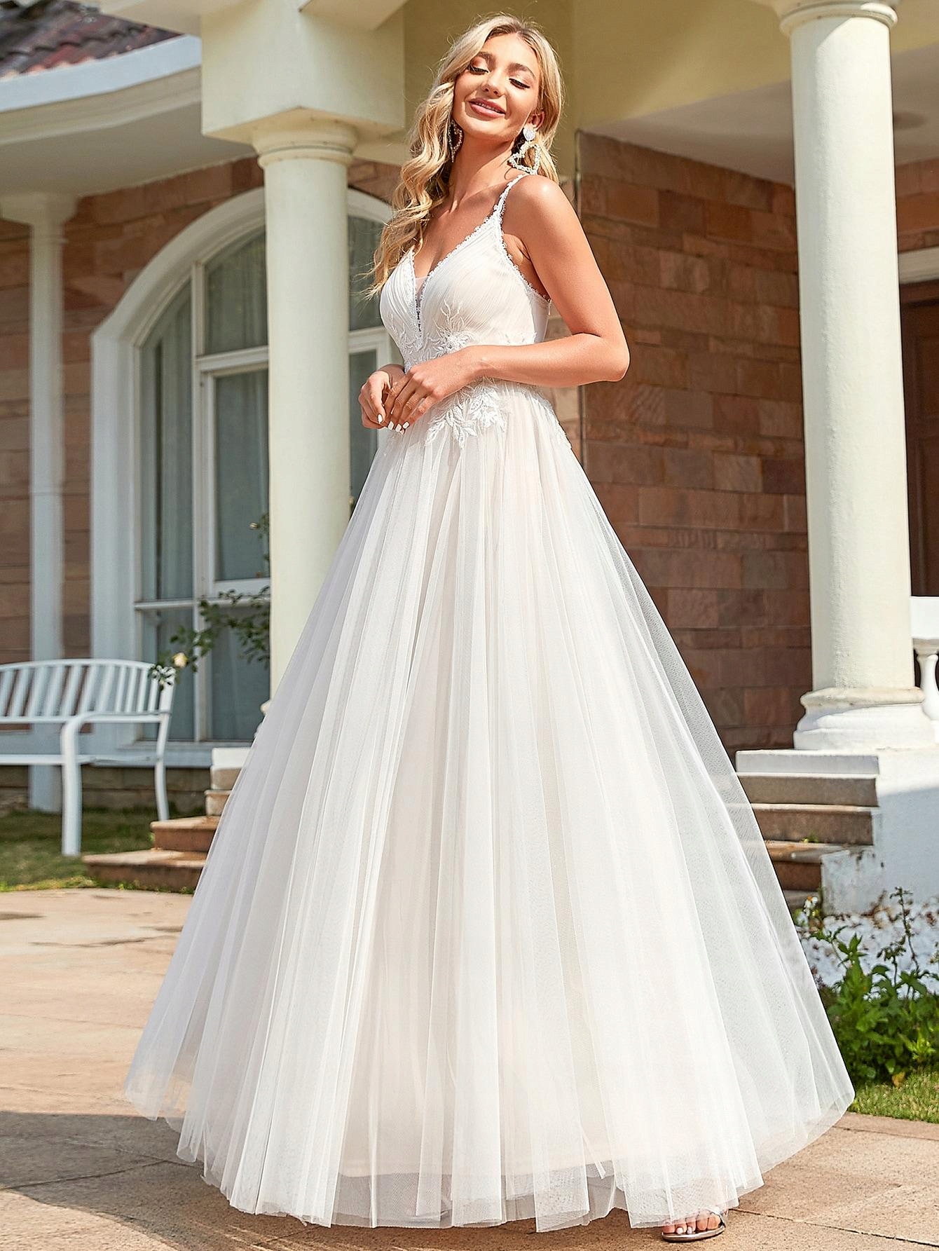 Біла плита весільна сукня з ремінцями коли -небудь Pretty 38