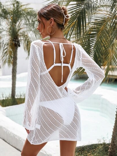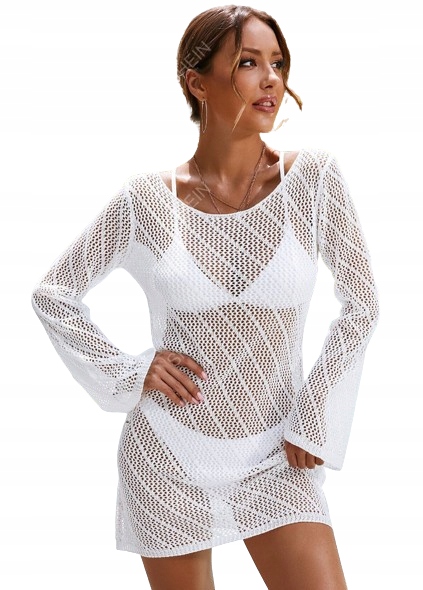 БІЛА ПЛЯЖНА ТУНІКА З ДОВГИМ РУКАВОМ MINI S L