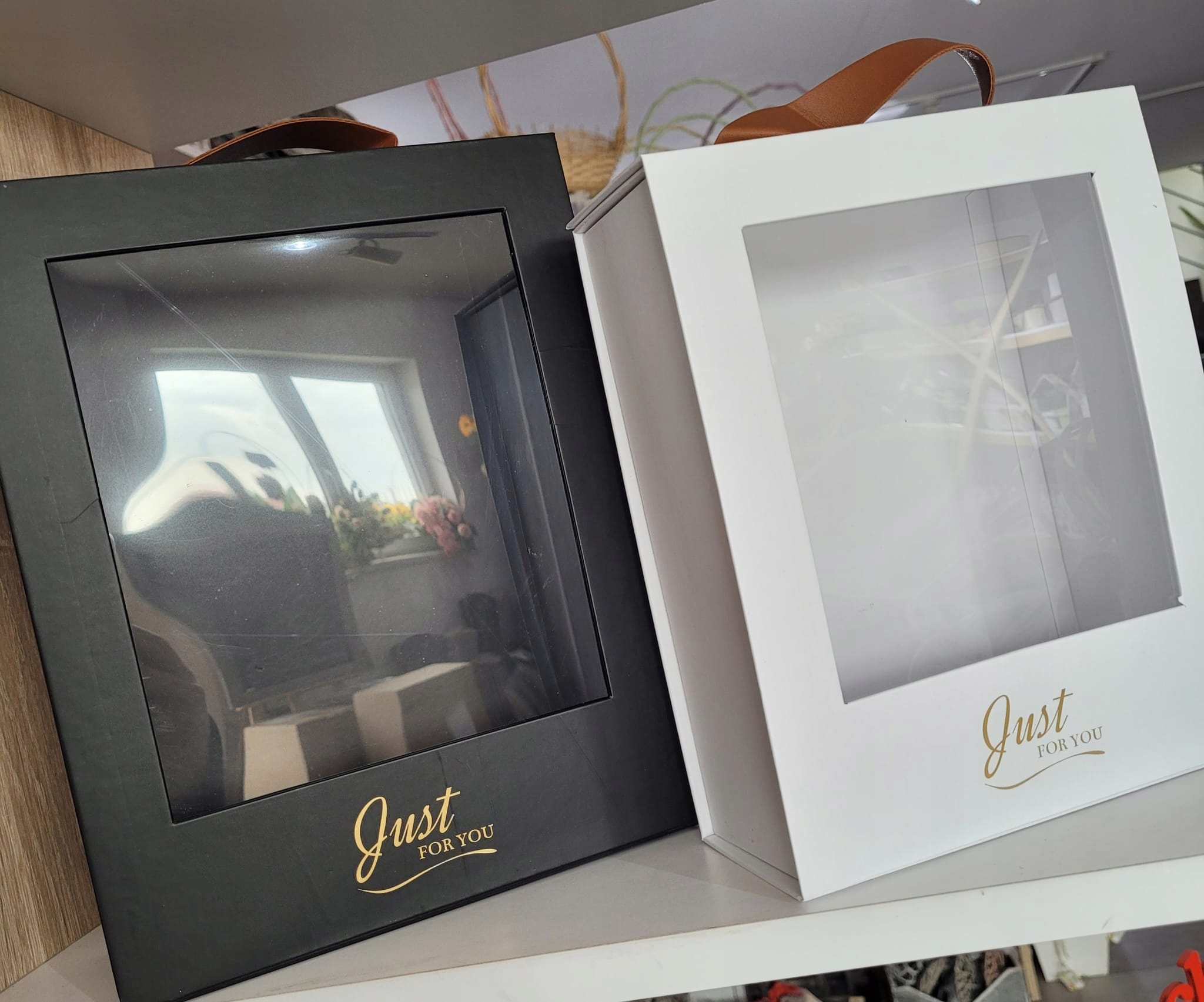 Вражаюча подарункова коробка з прозорим вікном та золотим написом саме для вас.