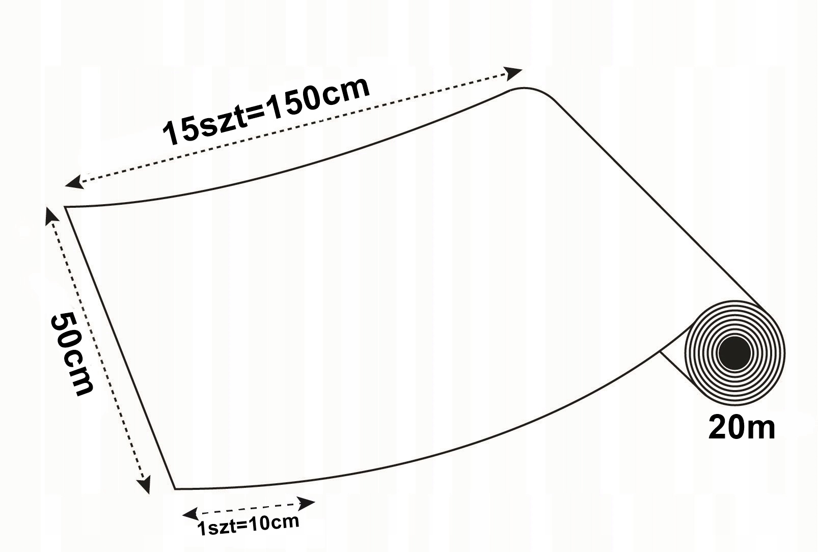 - Довжина: кілька 10 см (1шт=50x10см 2шт=50x20см 3шт=50x30см тощо)