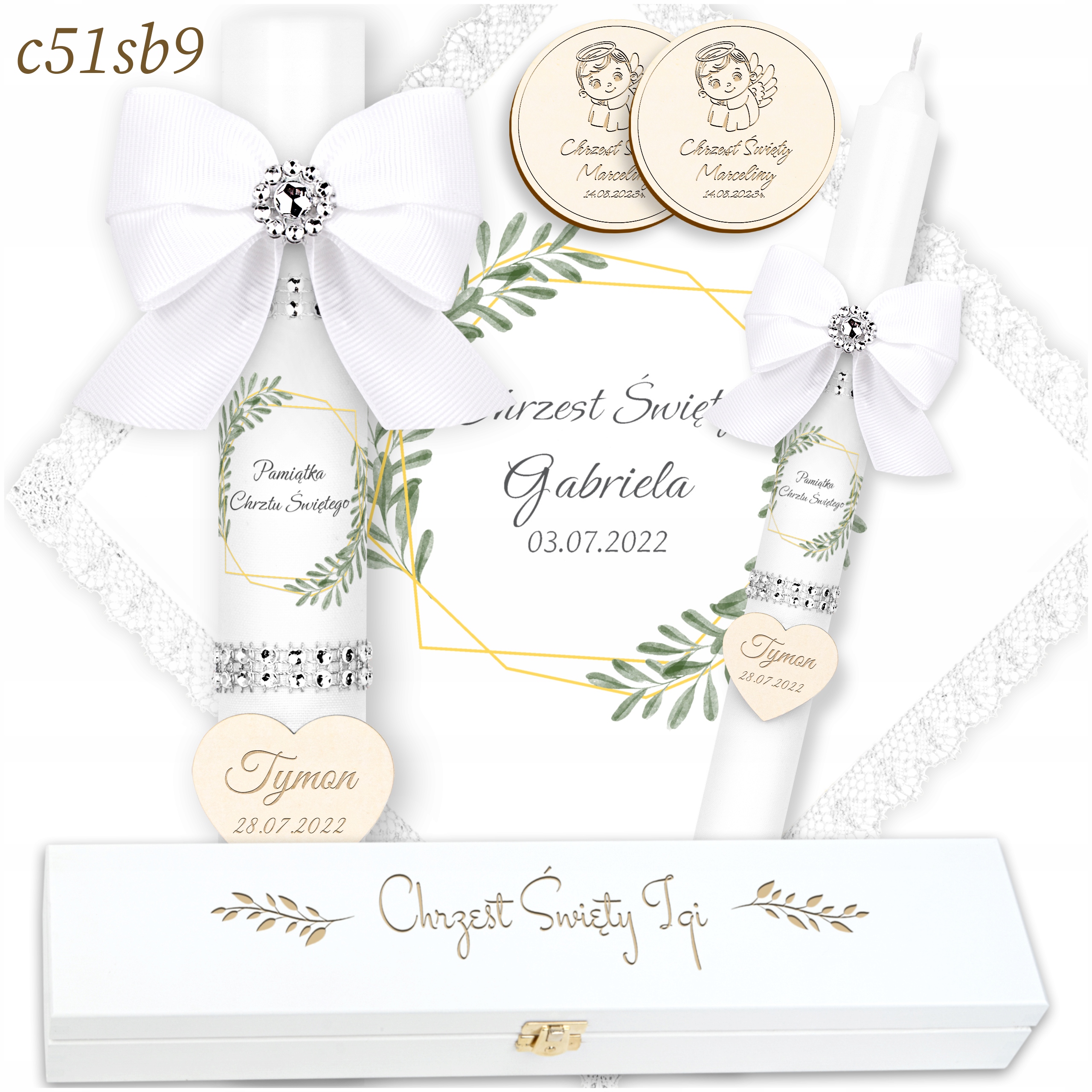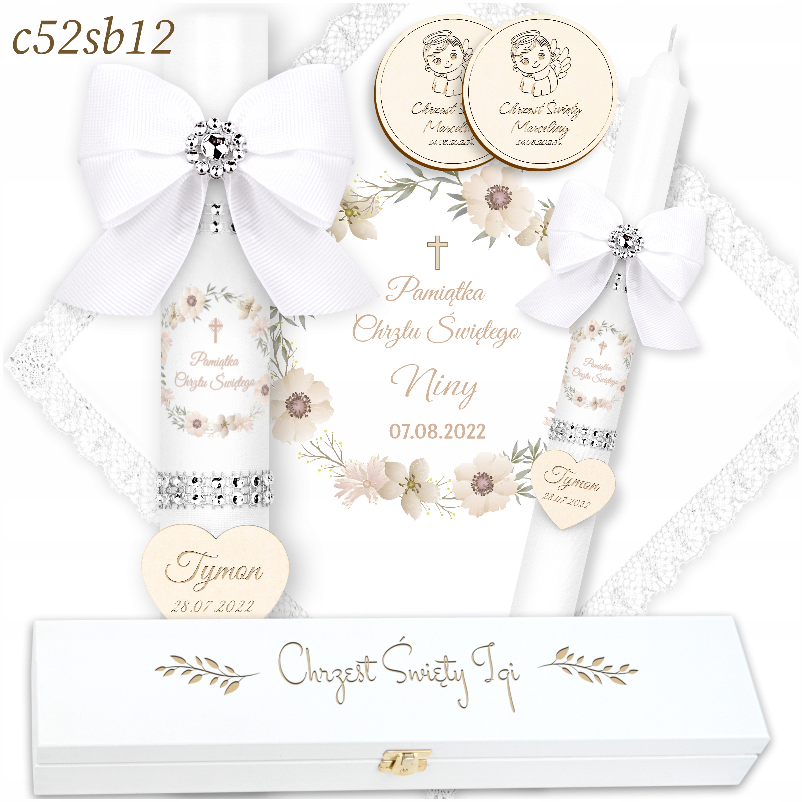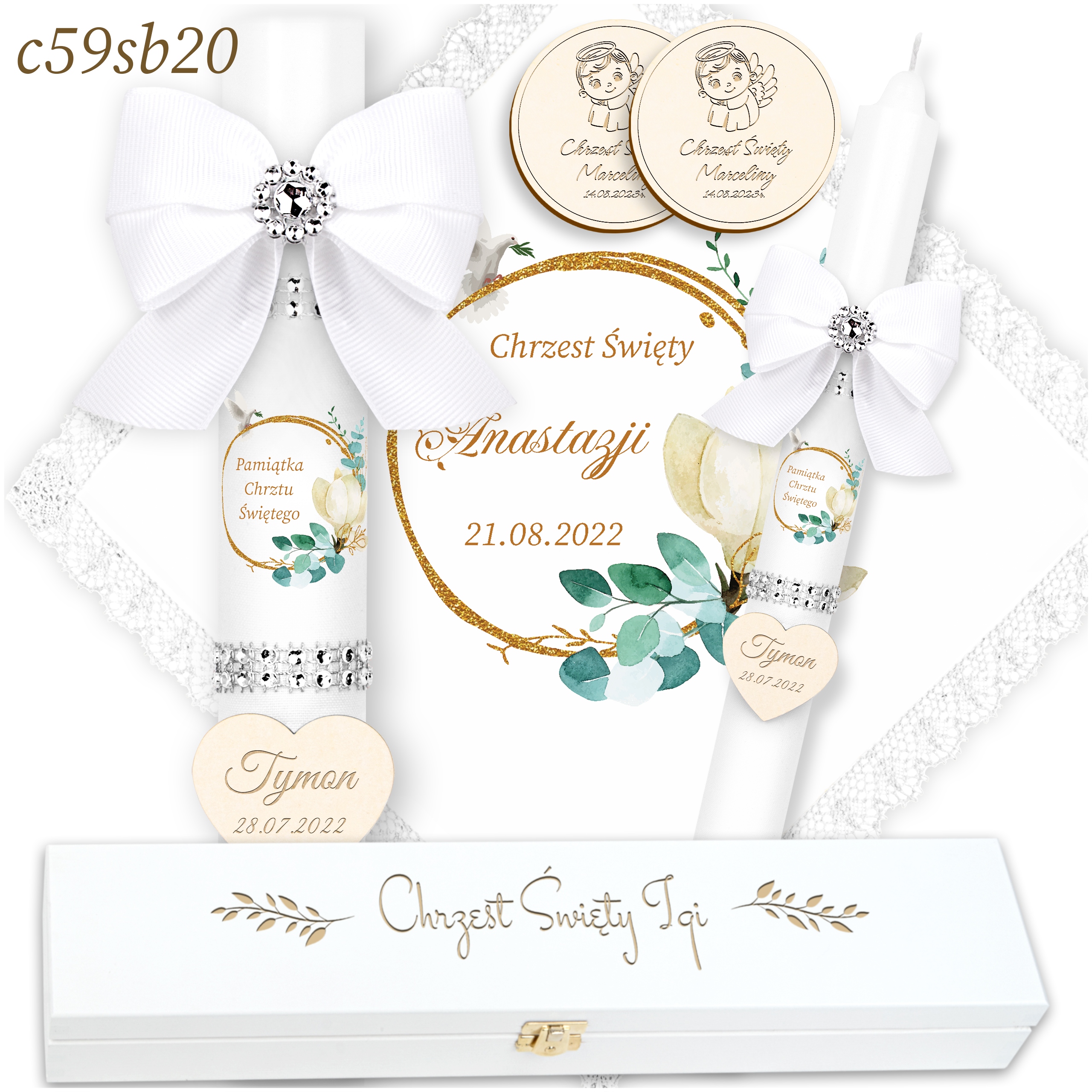 БІЛА ХРЕСТИЛЬНА СВІЧКА + МАГНІТИ + КОРОБКА