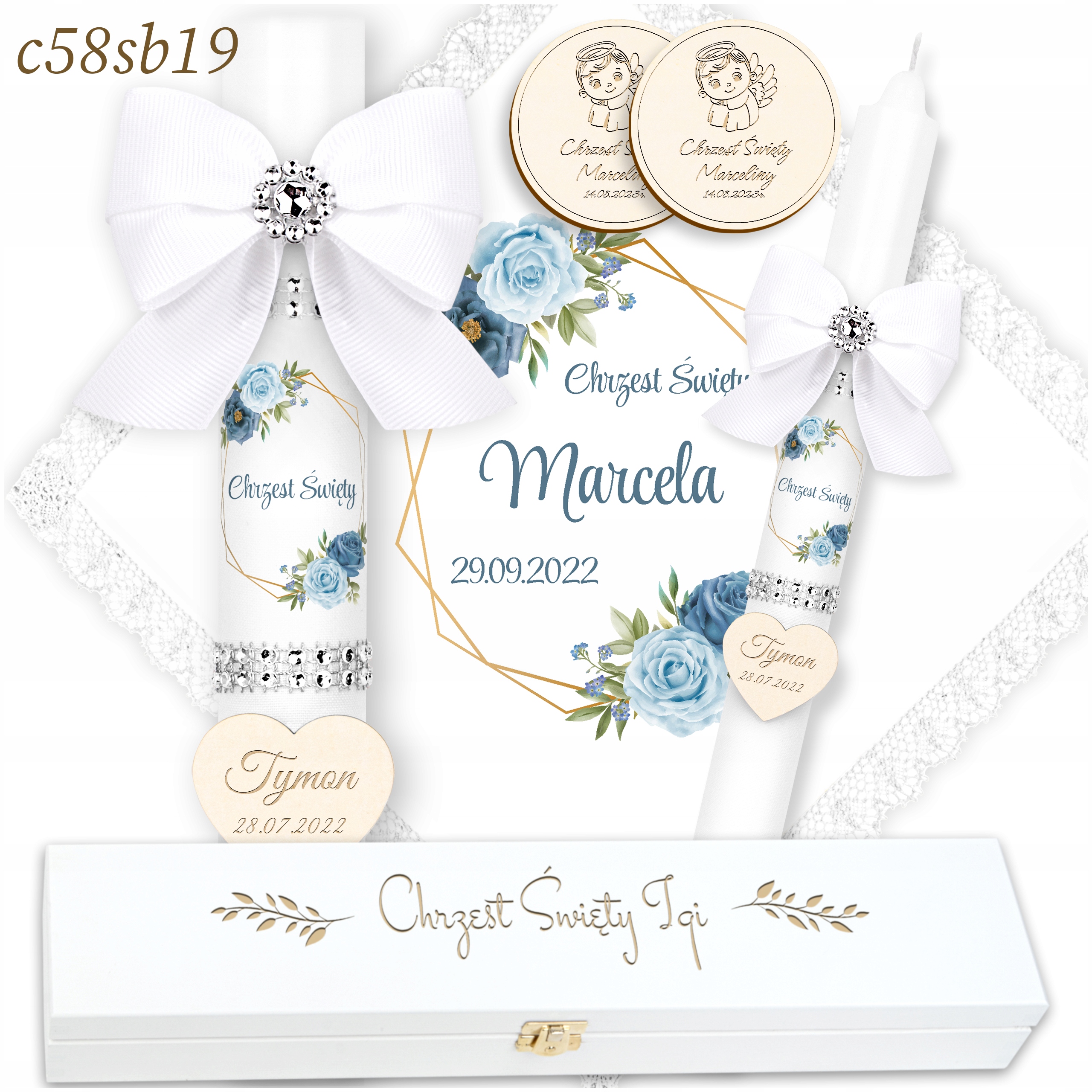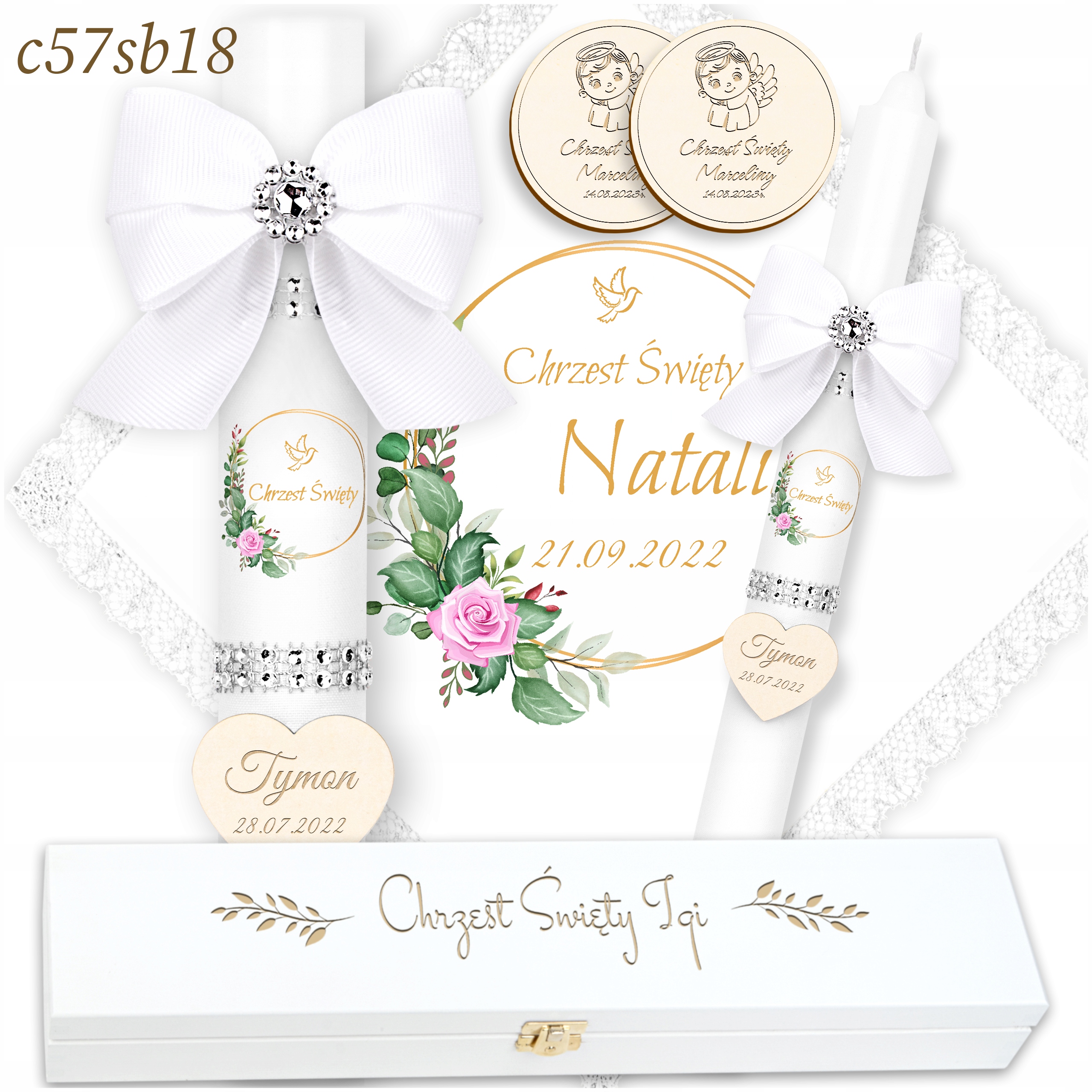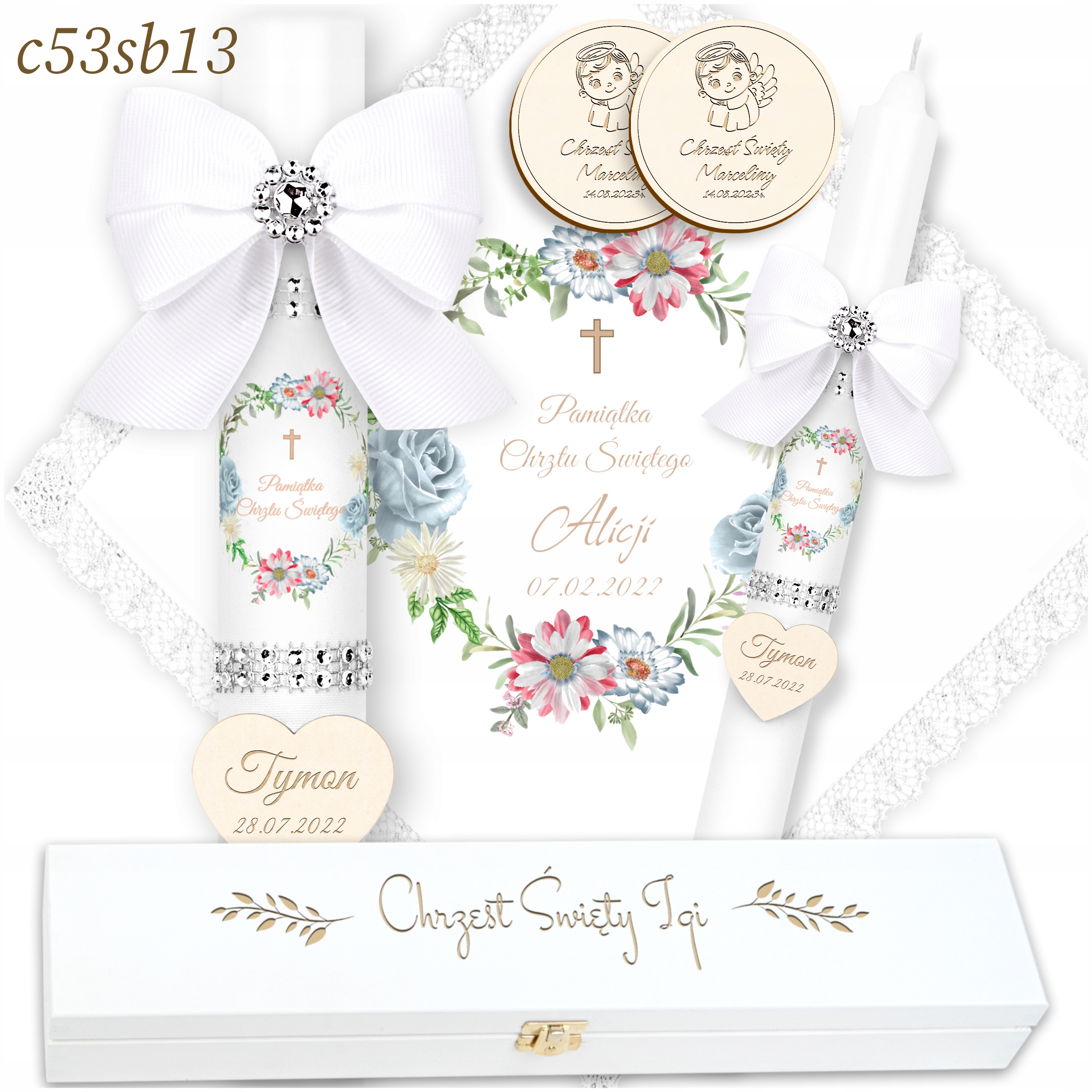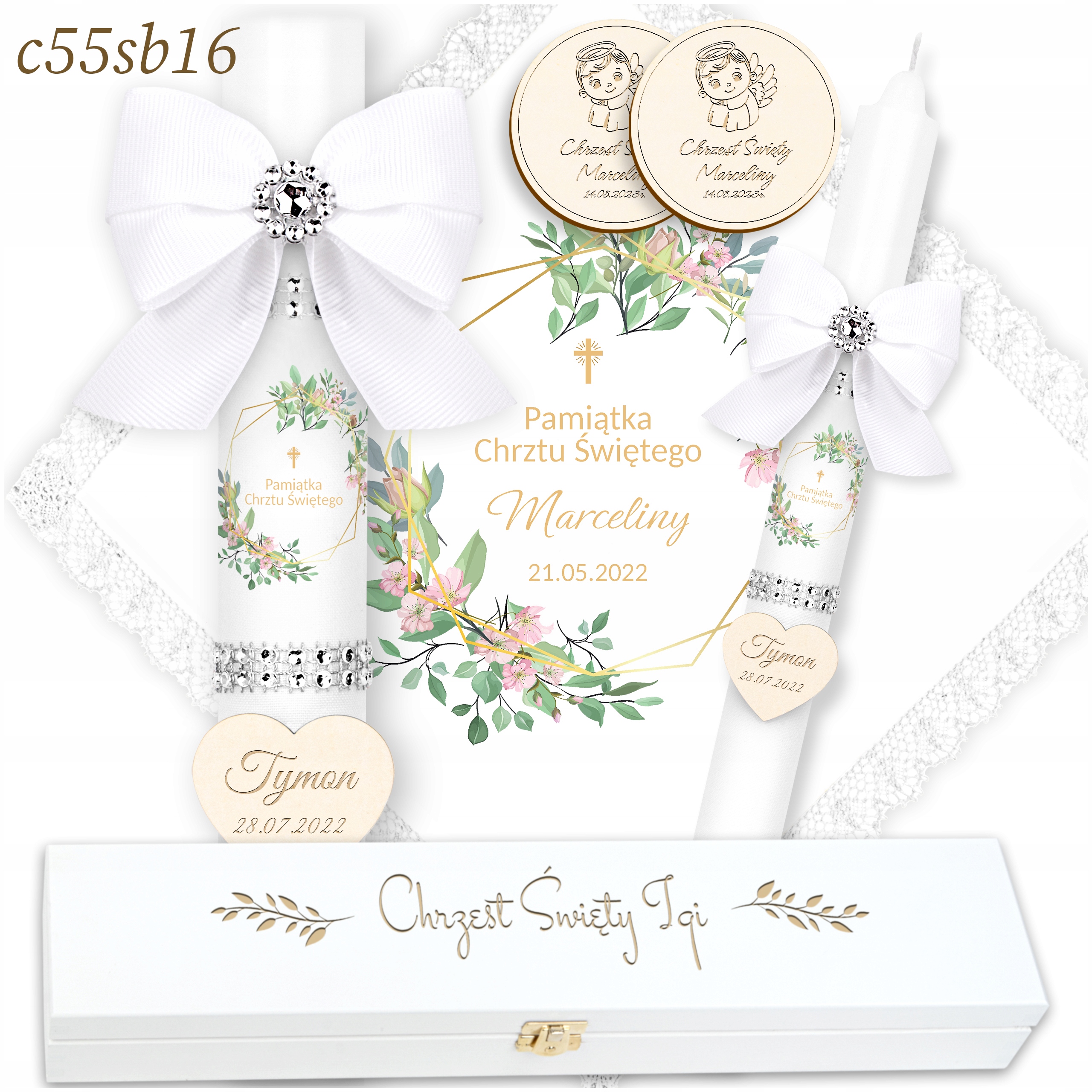 - 2 декоративних сувенірних магнітика з ім'ям дитини та датою хрещення. li>
