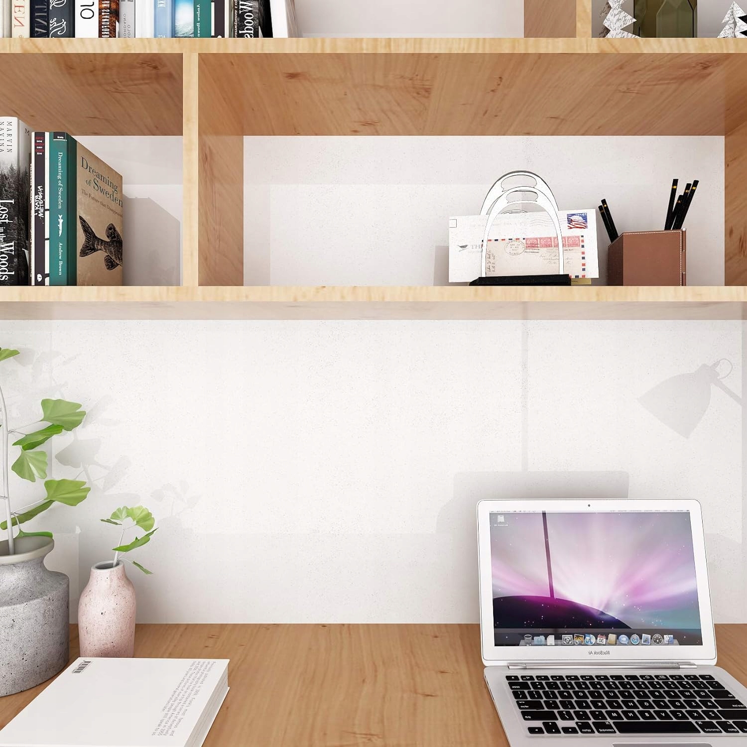 💪【Простий у використанні】Матова біла самоклеюча фольга має мірні лінії, які можуть бути точно вирізані та керовані початківцями. Нагадуємо, що під час вставлення можна залишити від 2 до 3 см, що зручно для подальшого регулювання.