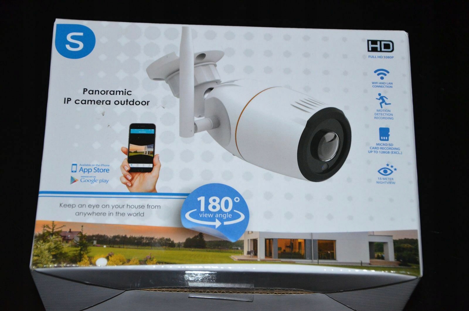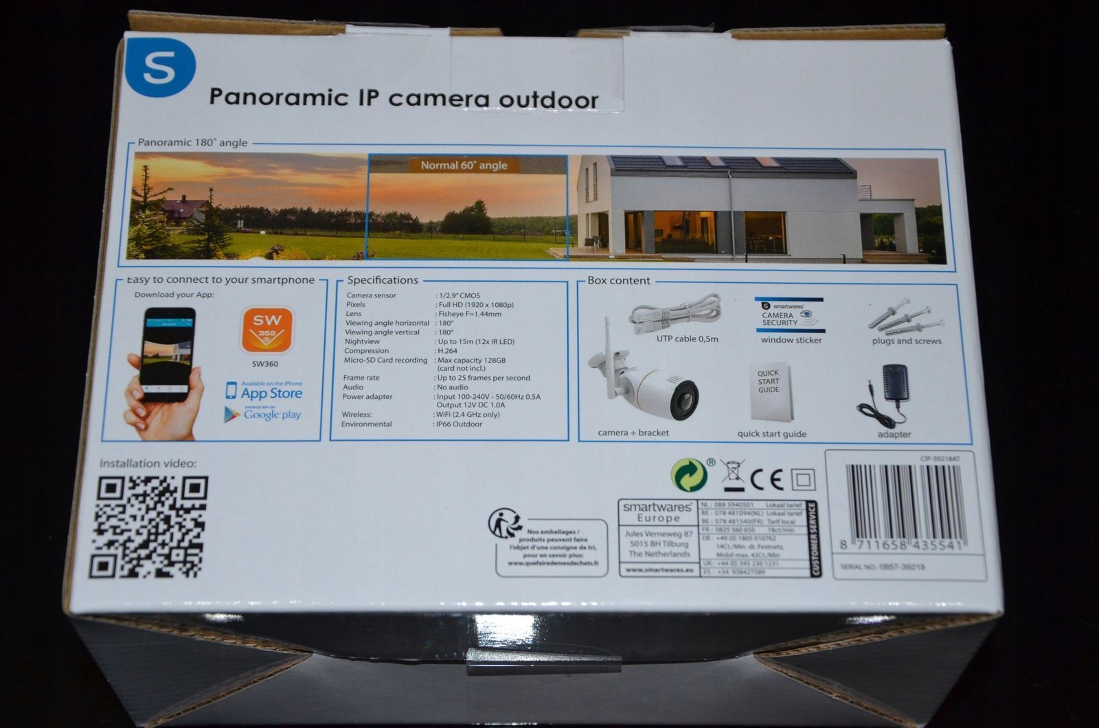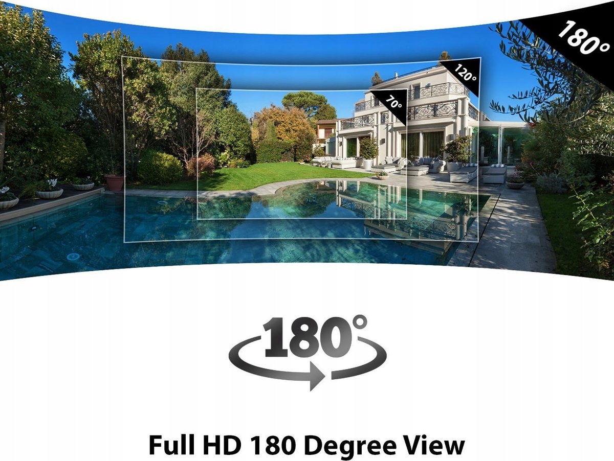 Висока якість запису Немає потреби в кількох камерах, ви можете використовувати одну камеру на 180°, щоб контролювати велику площу вашого саду або під'їзної дороги. Роздільна здатність камери становить 1080p Full HD, що забезпечує завжди високу якість відео. Навіть вночі камера записує у високій якості завдяки вбудованій системі нічного бачення. Безкоштовна програма SW360 дає вам можливість переглядати запис у панорамному або збільшеному вигляді.