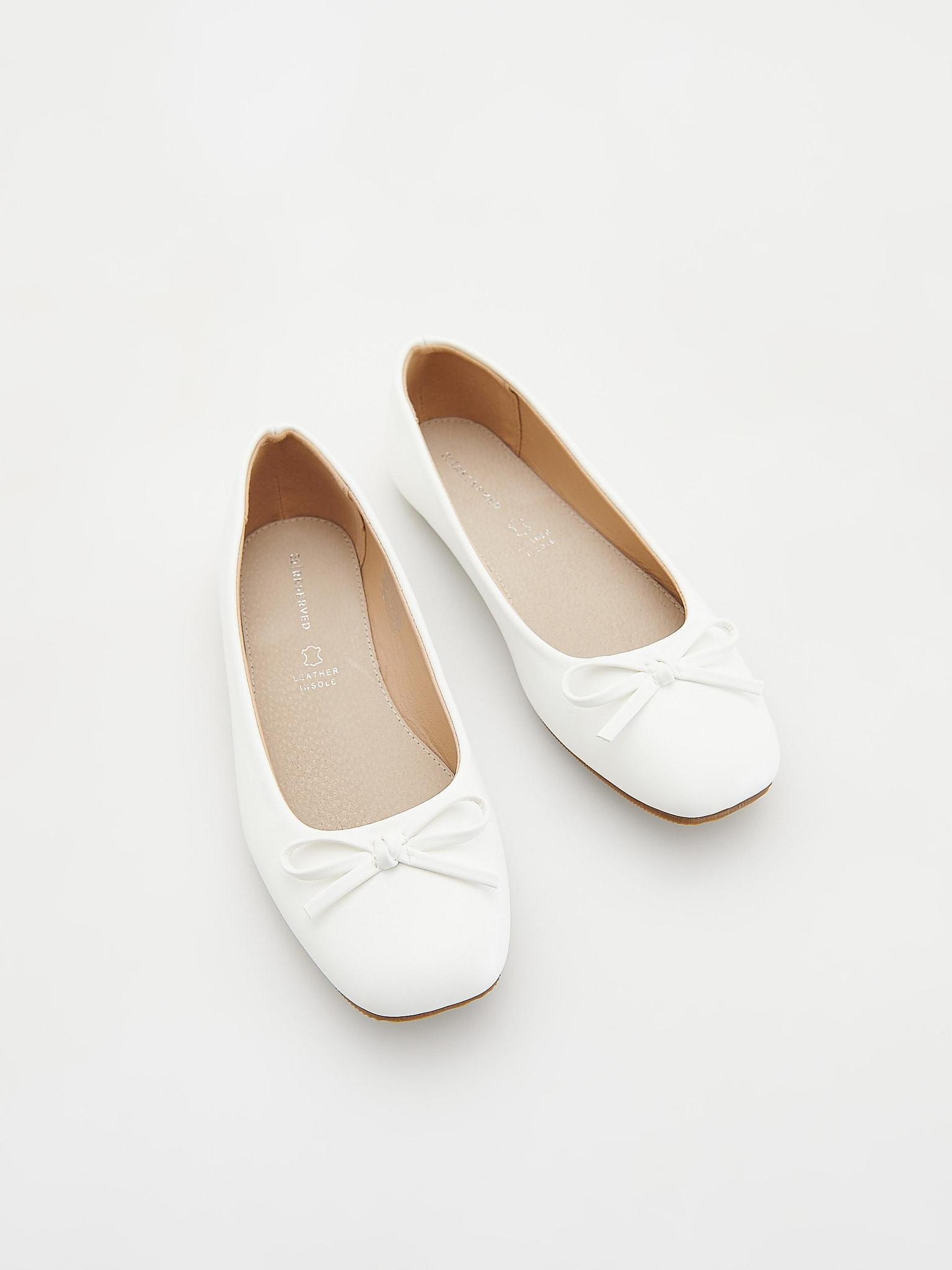 Біла шкіра класичні балерини ковзання -декоративний лук 39