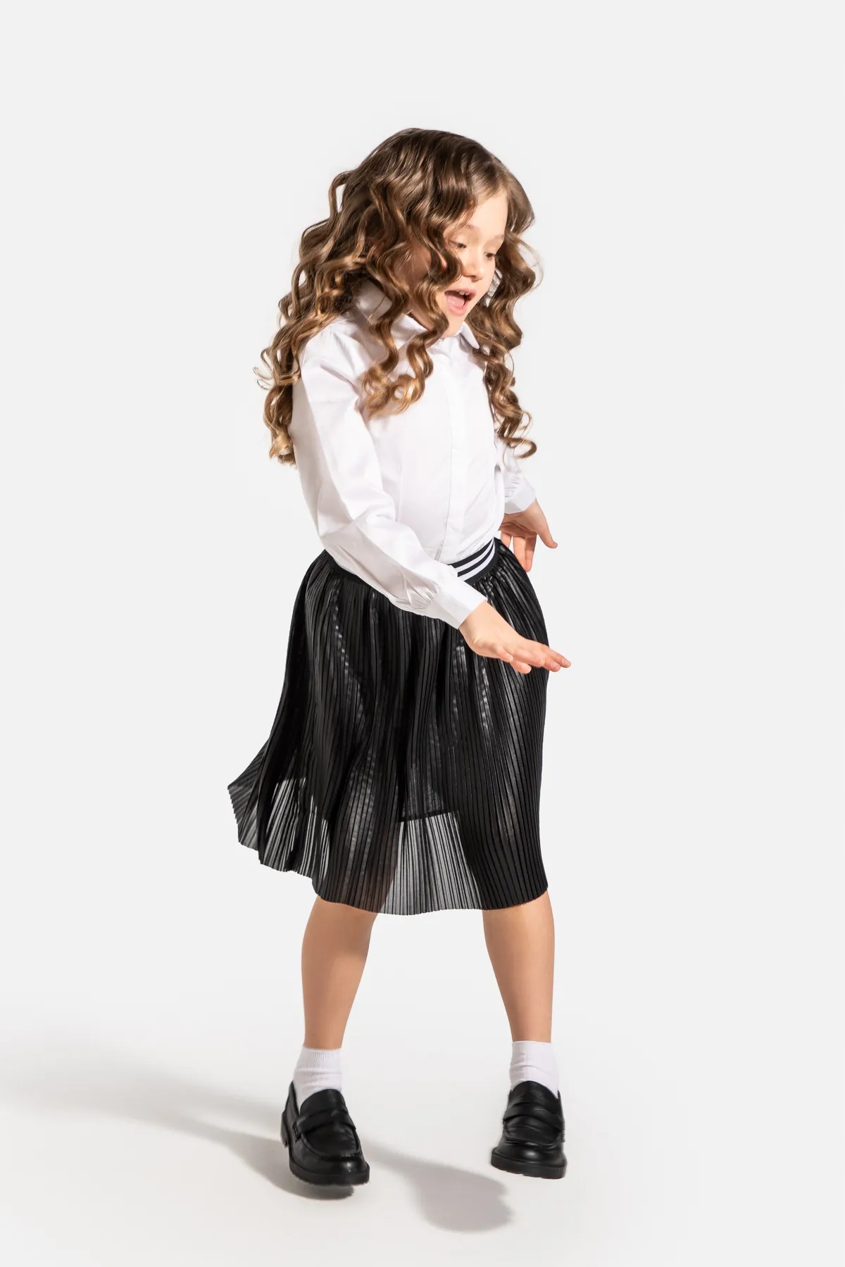 Класичний, старт сорочка - це незамінний елемент гардеробу дівчини. Блуза, яку ми пропонуємо від колекції елегантної молодшої дівчини , буде ідеальною під час школи школи та інших святкувань. Ми додали класичний комір і пухкі рукави до t -сорочки. Кнопки по всій довжині були заховані під додатковим шаром матеріалу. У блузці також є ніжна лінія талії, яка тонко підкреслить фігуру вашої дочки. Як ви знаєте, ніхто не любить жорсткий і незручний одяг, саме тому наша сорочка була зроблена з м'якої бавовни , щоб кожна дитина відчувала велике задоволення і свободу, коли носять її навіть цілий день.