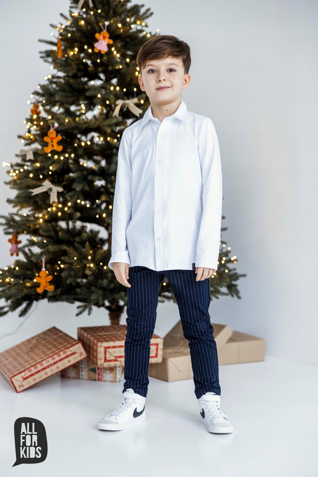 Елегантна сорочка для хлопчика від польського бренду All For Kids для любителів спортивної елегантності. Біла сорочка з довгим рукавом виготовлена з високоякісної зручної гладкої бавовни, тому не сковує рухів.