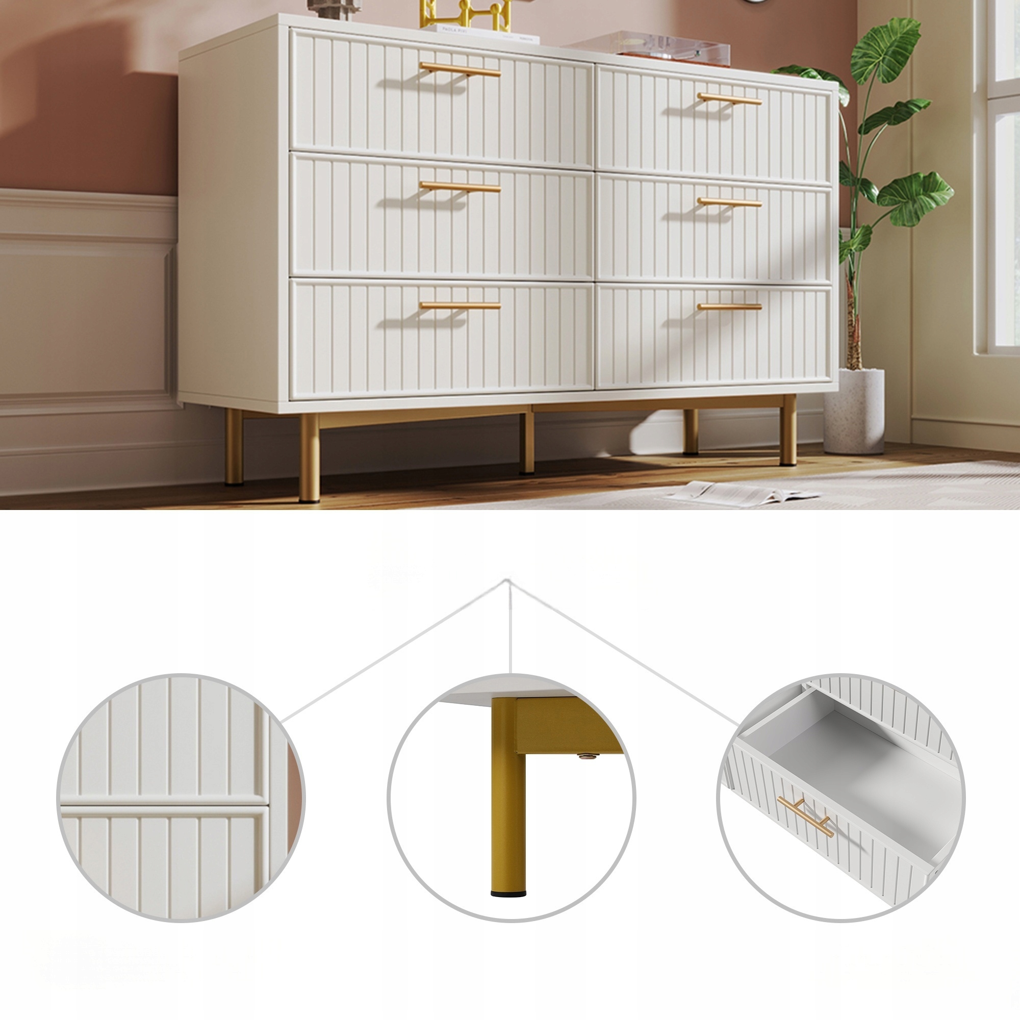 ✨prosty, Zarazem elegancki kształt z ozdobnymi żebrami na frontach to must-have miłośników nowoczesnego devaryu. Projektowi Lekkości, A Ozdobne Złote Uchwyty Dopełniają całości. Завдяки симетричному, благаному дизайну та гладкій лінії, ця комода буде справжньою заявою у вашому домі.