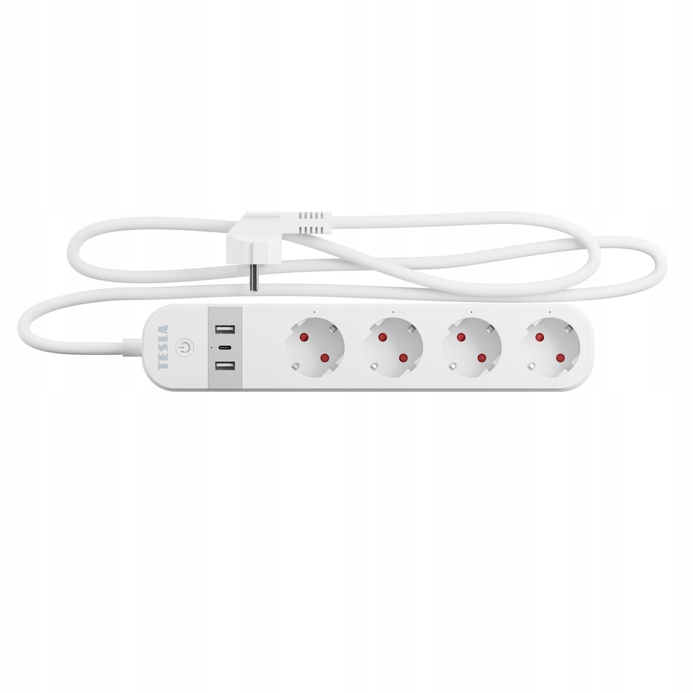 Біла стрічка Tesla Smart 4 гнізда + 2xUSB+ 1xUSB-C, додаток для смартфона