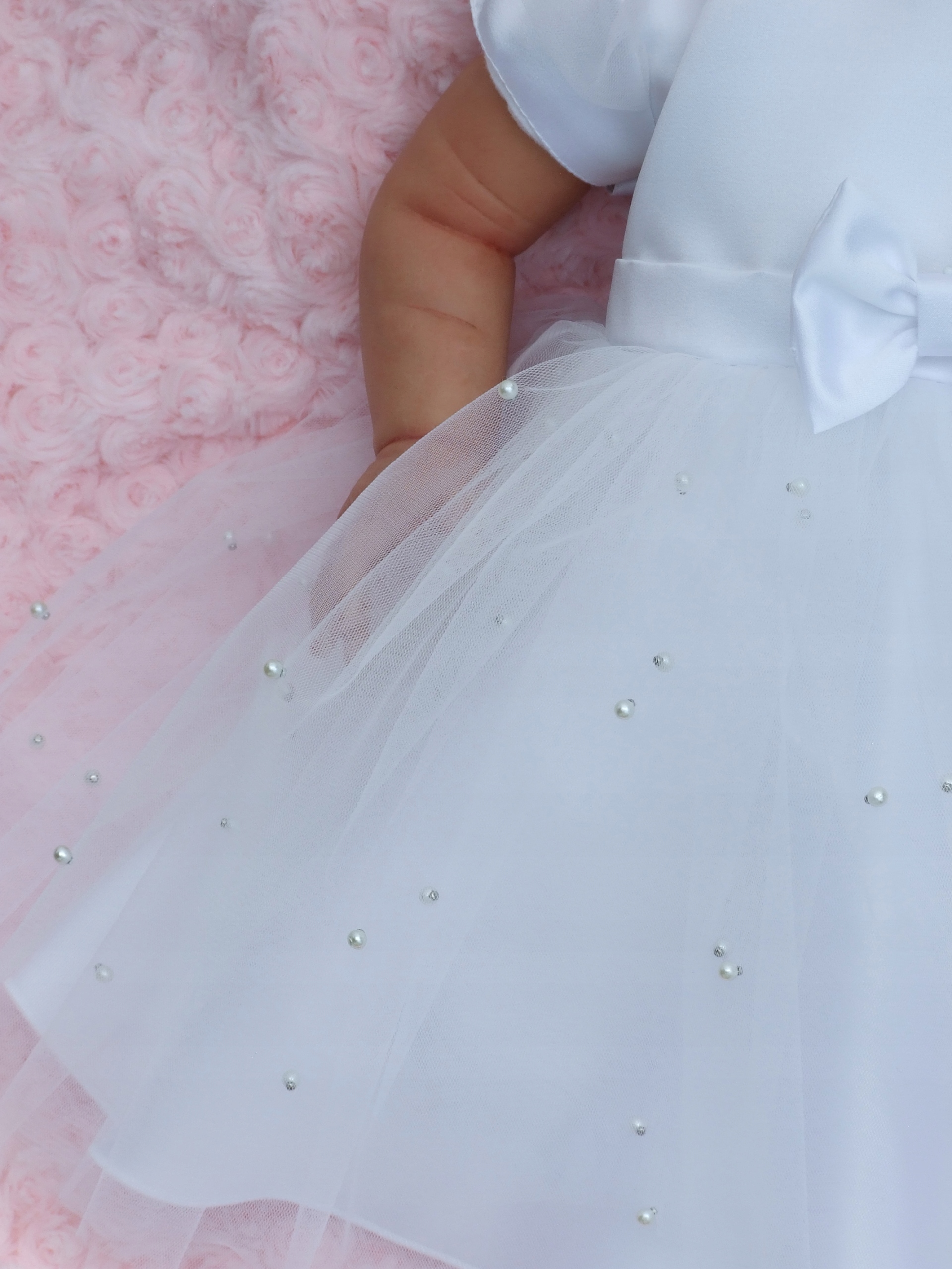 Біла сукня з перлами для дівчинки 56R Хрещення