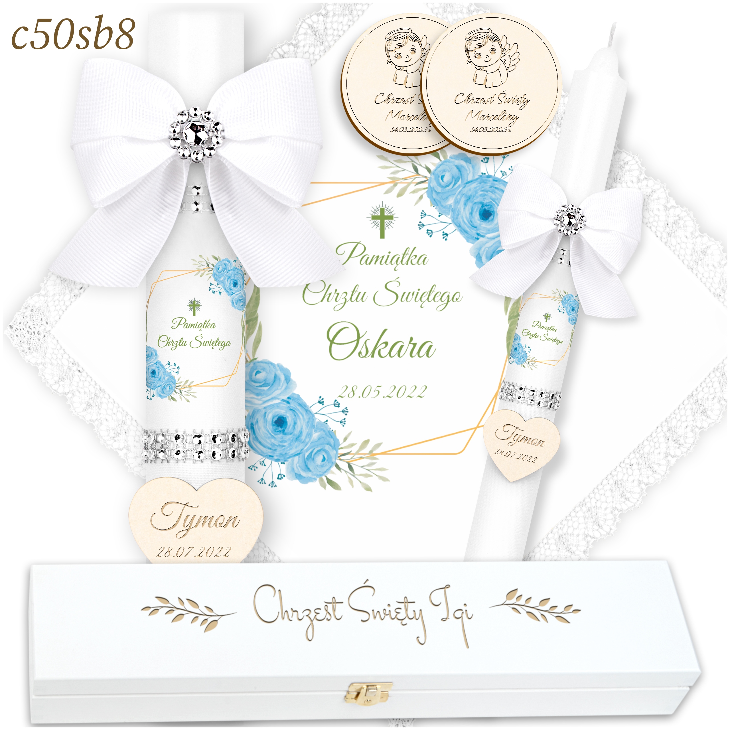 БІЛА СВІЧКА ДЛЯ ХРЕЩЕННЯ + МАГНІТИ + КОРОБКА IHS5