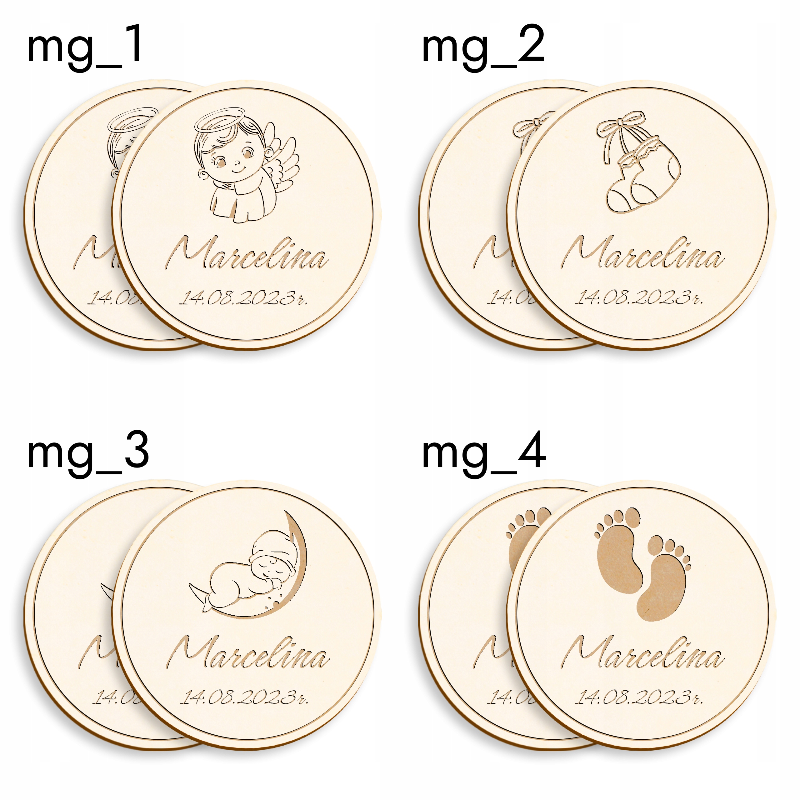 - 2 декоративні, сувенірні магніти з ім'ям дитини та датою хрещення.