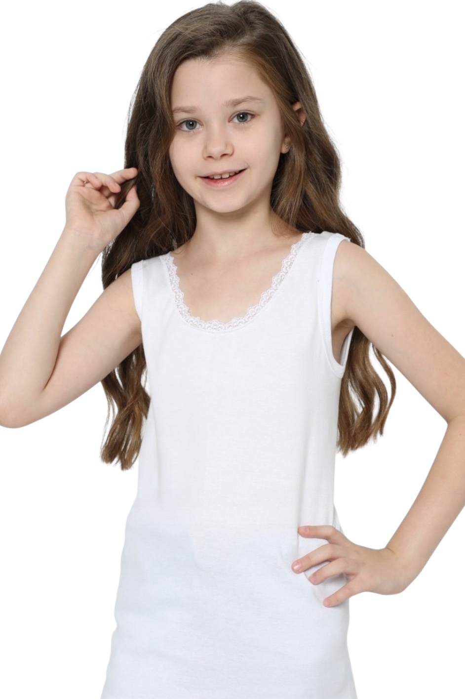 гладка довша t -сорочка для дівчини, декольте, закінчене мереживом.