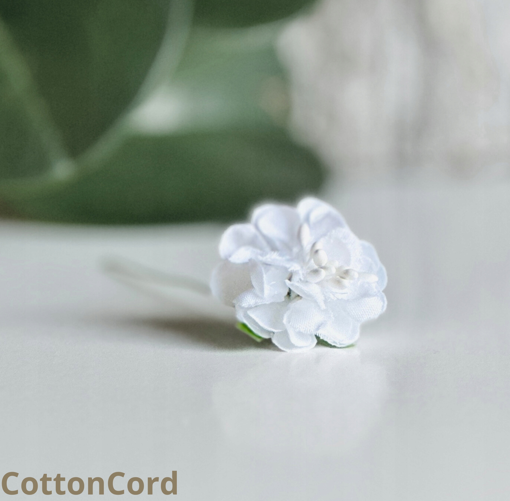 Біла текстильна квітка на дроті. Квіти для ляльок та ангелів FI35 мм