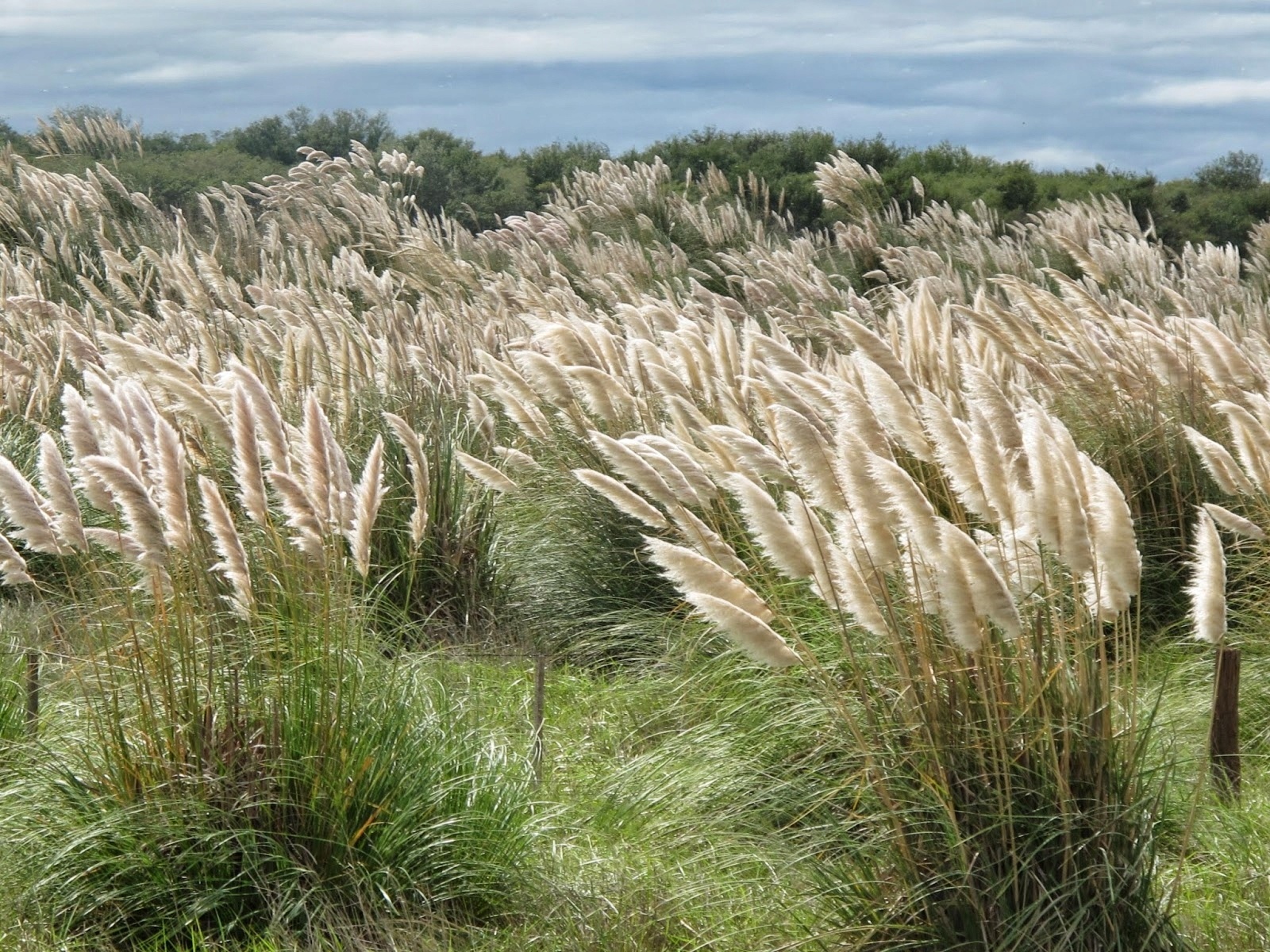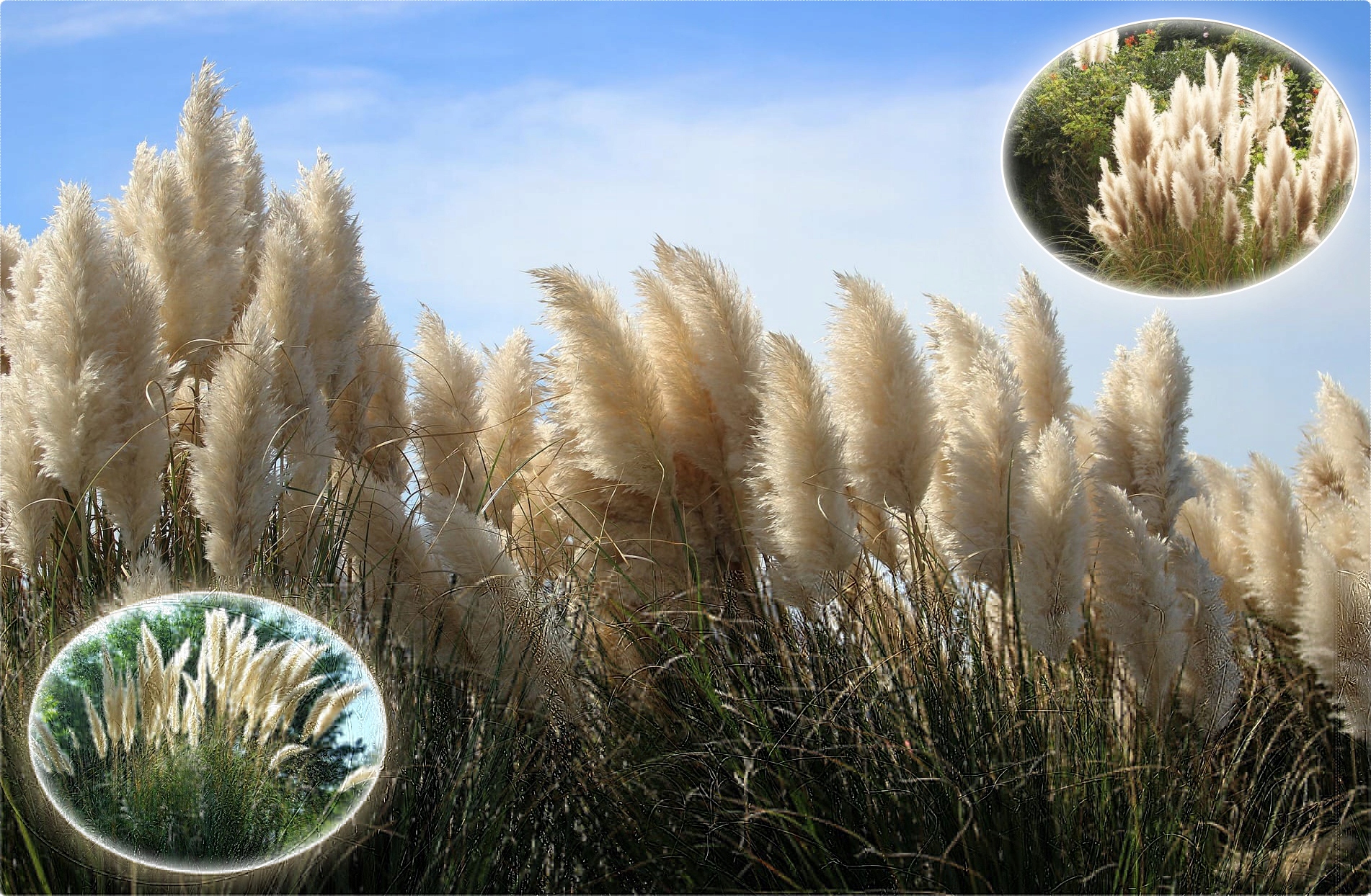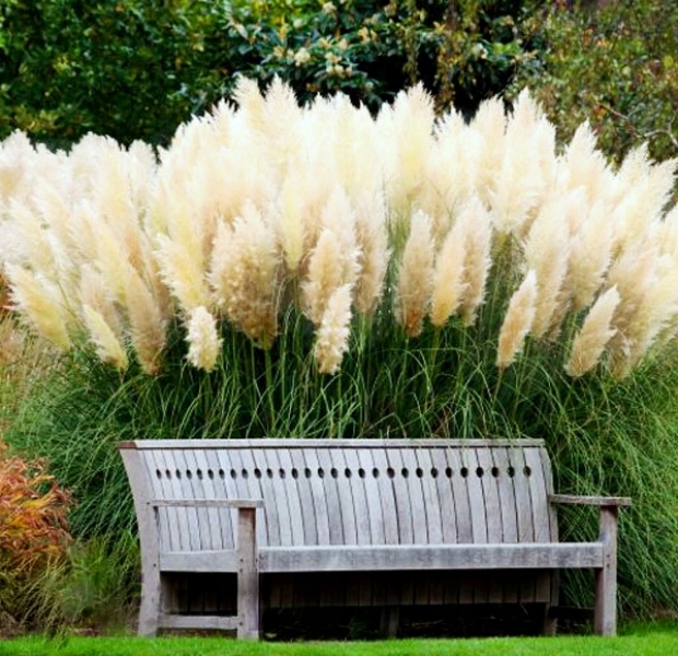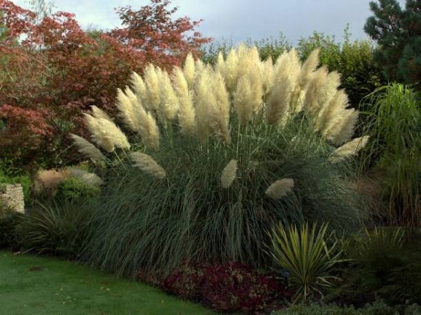 Трава Пампаса - створює досить великі, компактні скупчення, що складаються з вузьких, довгих, жорстких листя, злегка ковзання зовні. Край листа покрита гострими зубами, що може призвести до пошкодження шкіри, якщо не буде обережно під час догляду під час догляду. Це виглядає цікаво проти газону або вбудовано у водоймах. Сторінки часто використовуються для прикраси букетів.