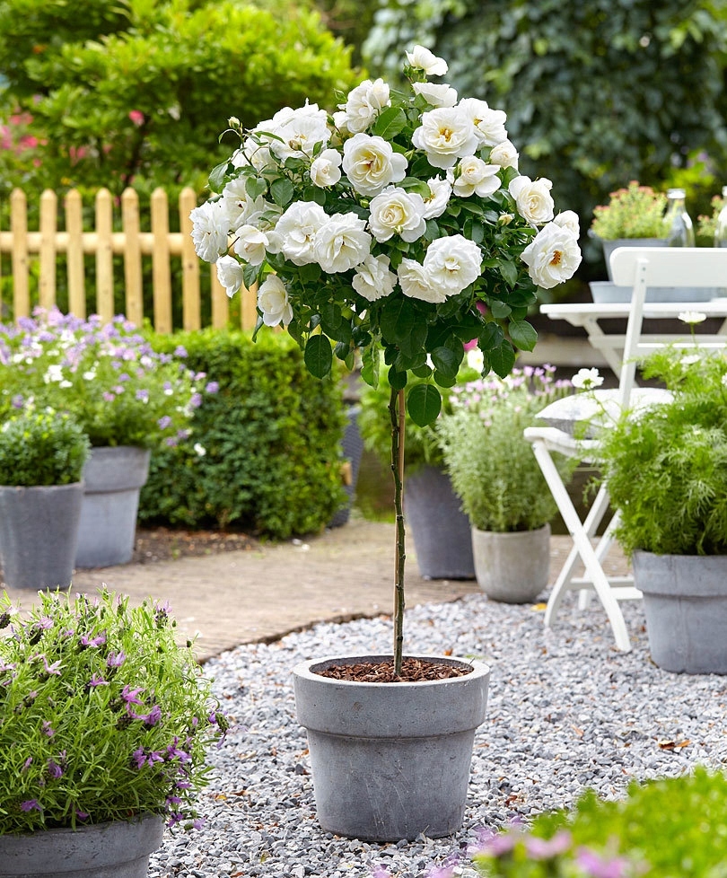 - Використовуйте : Завдяки його елегантному декоративному вигляду біла біла троянда ідеально підходить для посадки в садах як рослина пасьянсу (незалежно зростає), у рядах або в групах. Він також чудово працює в горщиках на терасах та балконах.