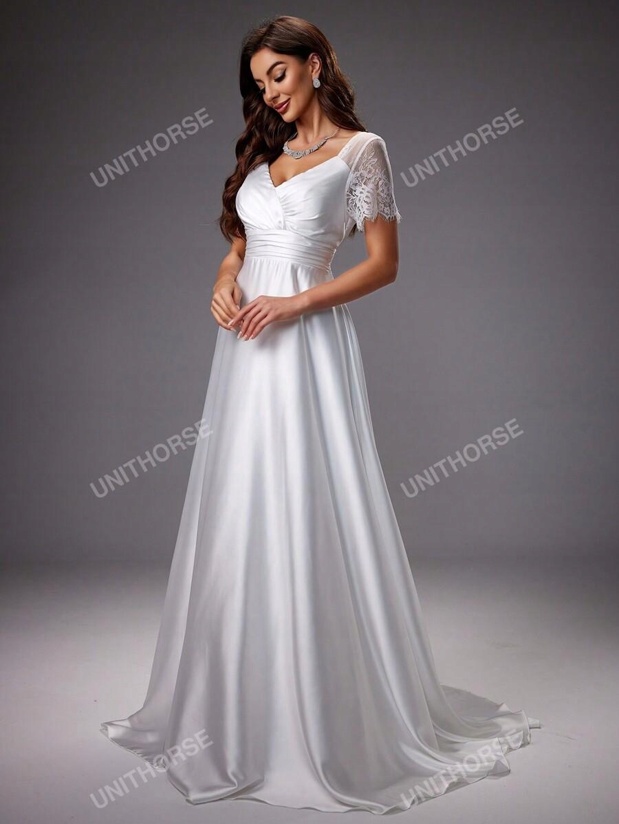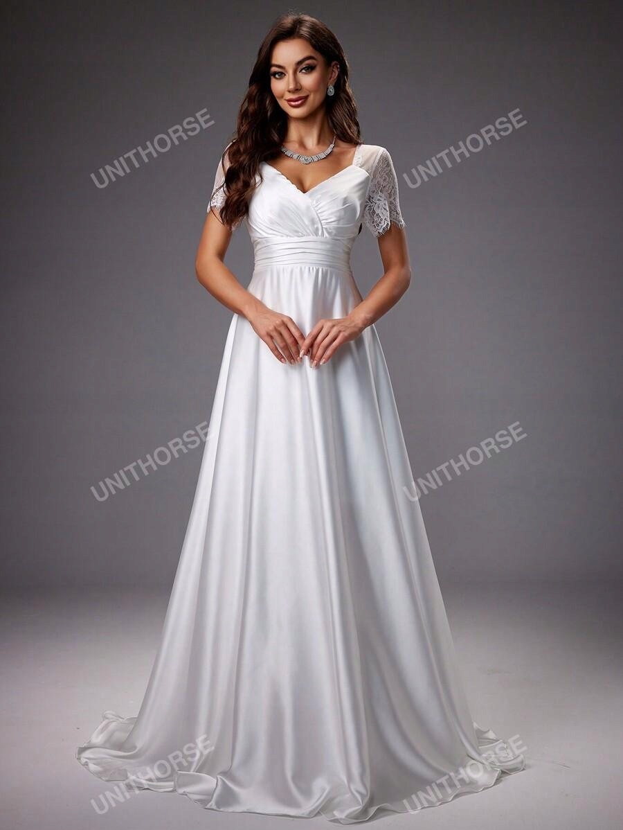 Біла весільна сукня Maxi Satin Spled Laze Shein 38