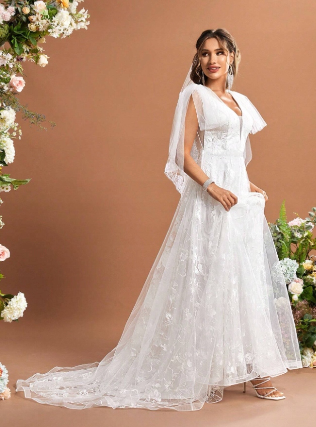 БІЛА ВЕСІЛЬНА СУКНЯ SHEIN WHITE, МЕРЕЖИВО, 44 VTC
