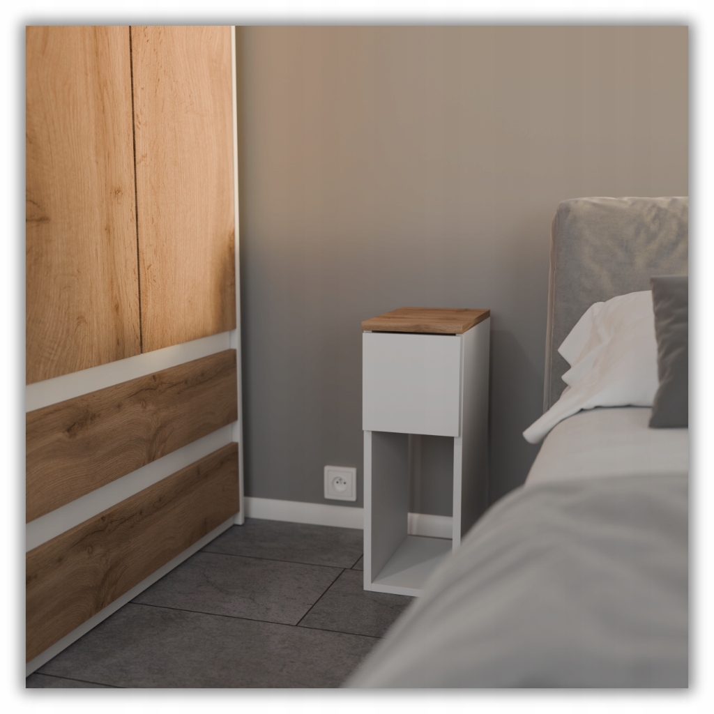 БІЛА ВУЗЬКА ТУМБА 20 СМ СКАНДИНАВСЬКИЙ СТІЛ З 1 ЯЩИКОЮ ДЛЯ СПАЛЬНІ