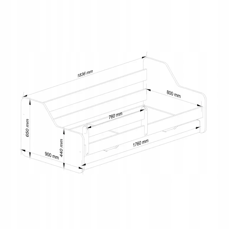 Продукція, створена, щоб дарувати радість дітям. Ліжко ідеально підходить для щоденних ігор і спокійного та безпечного сну. У місткий ящик помістяться іграшки та постільна білизна. Продукт створений для безпечного та функціонального використання.