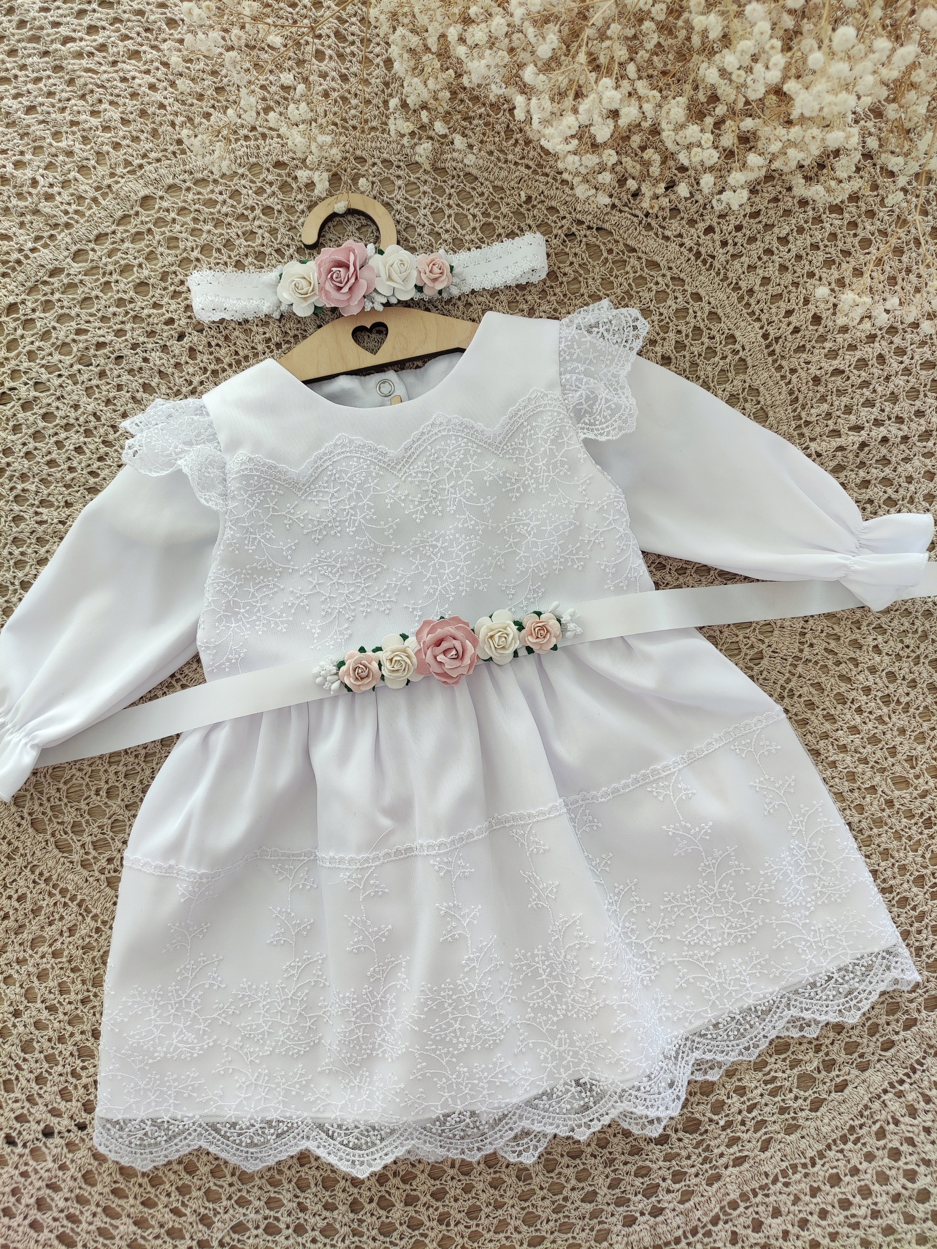 Сукня для дівчинки, рекомендована для хрещення. До комплекту рекомендую хрестильну куртку Адель брудно-рожевого або білого кольору.