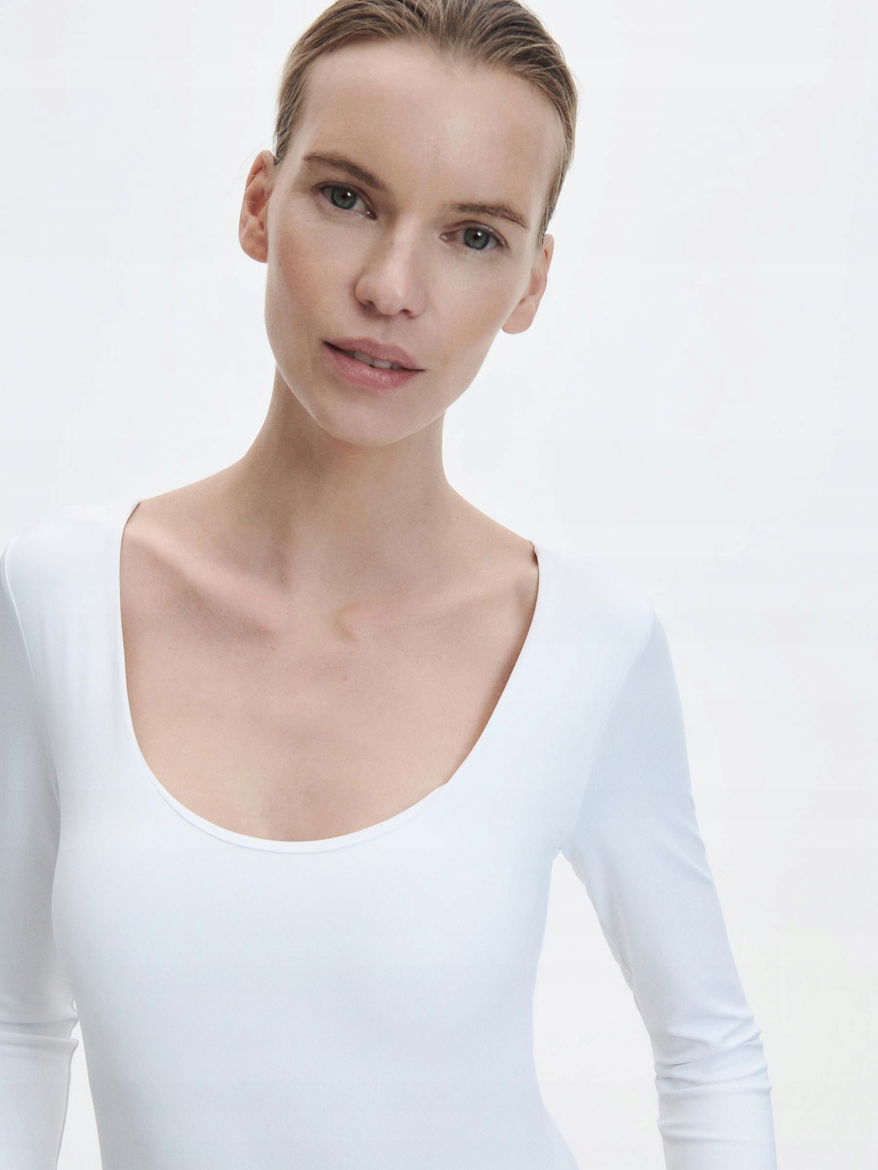 БІЛЕ ПРИТАЛЕНЕ БОДИ, ГЛАДКА, З ДОВГИМ РУКАВОМ, ВУЗЬКИЙ КРОЙ RESERVED XS