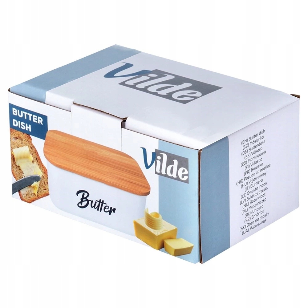 - вершкове масло для зберігання та подачі вершкового масла - масло для зберігання вершкового масла в холодильнику та подачі його. Масляк має розміри 15 х 10 х 7,5 см, висота вершкового масла без кришки становить 7 см. 4 Це виглядає дуже елегантно, завдяки бамбуковій кришці.