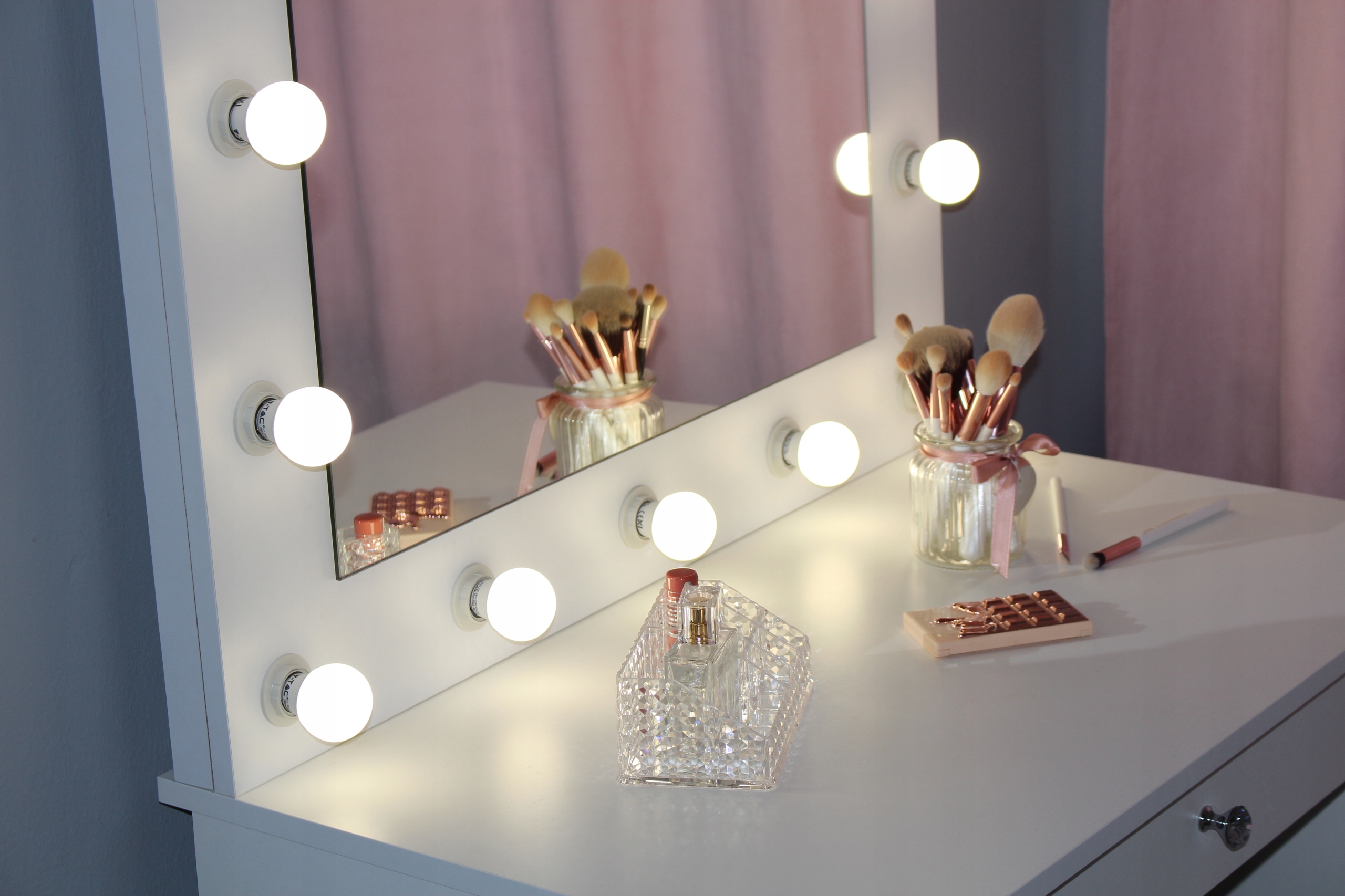 Дзеркало ідеально підходить як для професійного макіяжу в студії, так і для куточка краси вдома.