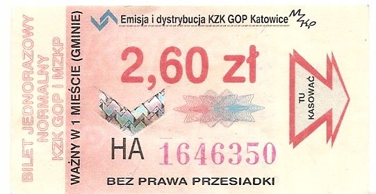 BILET JEDNOKROTNEGO KASOWANIA KATOWICE NORMALNY -2010 rok