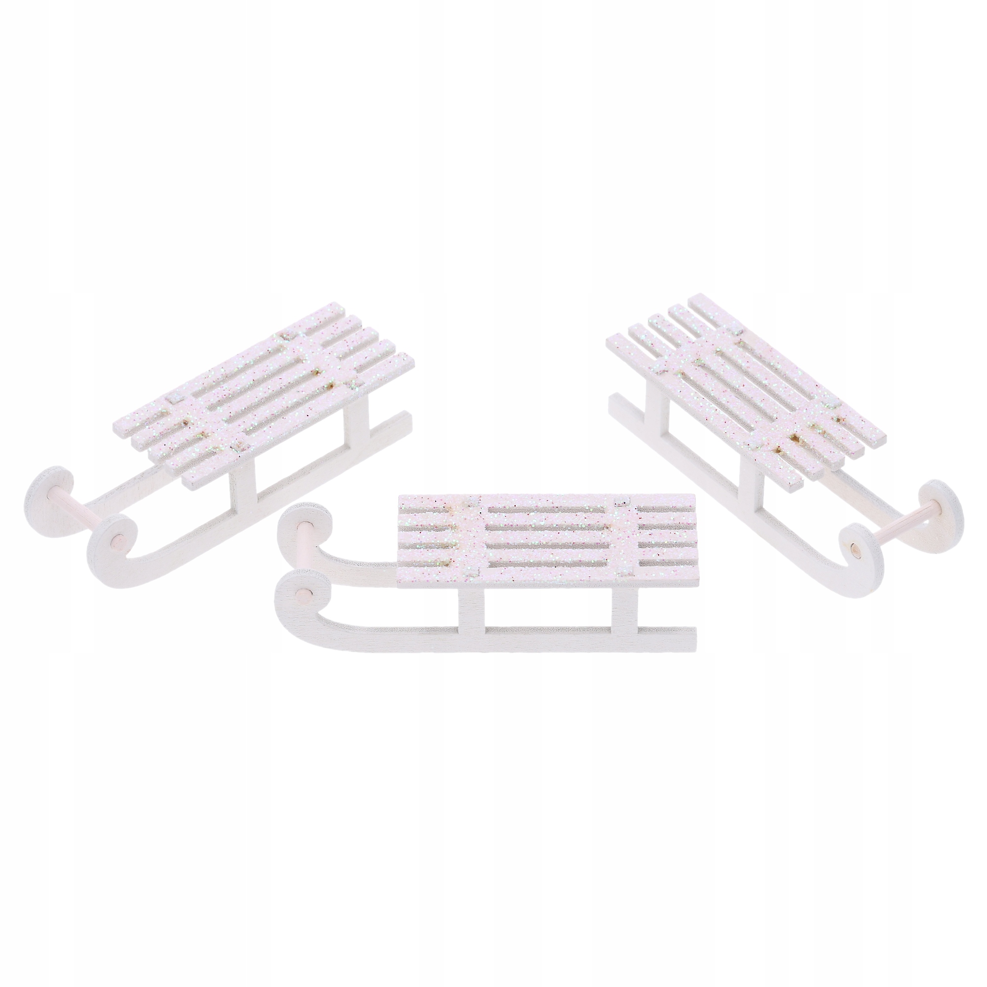 Білі дерев’яні міні -сани з блискучими сном декоративними підвісками 3 шт.