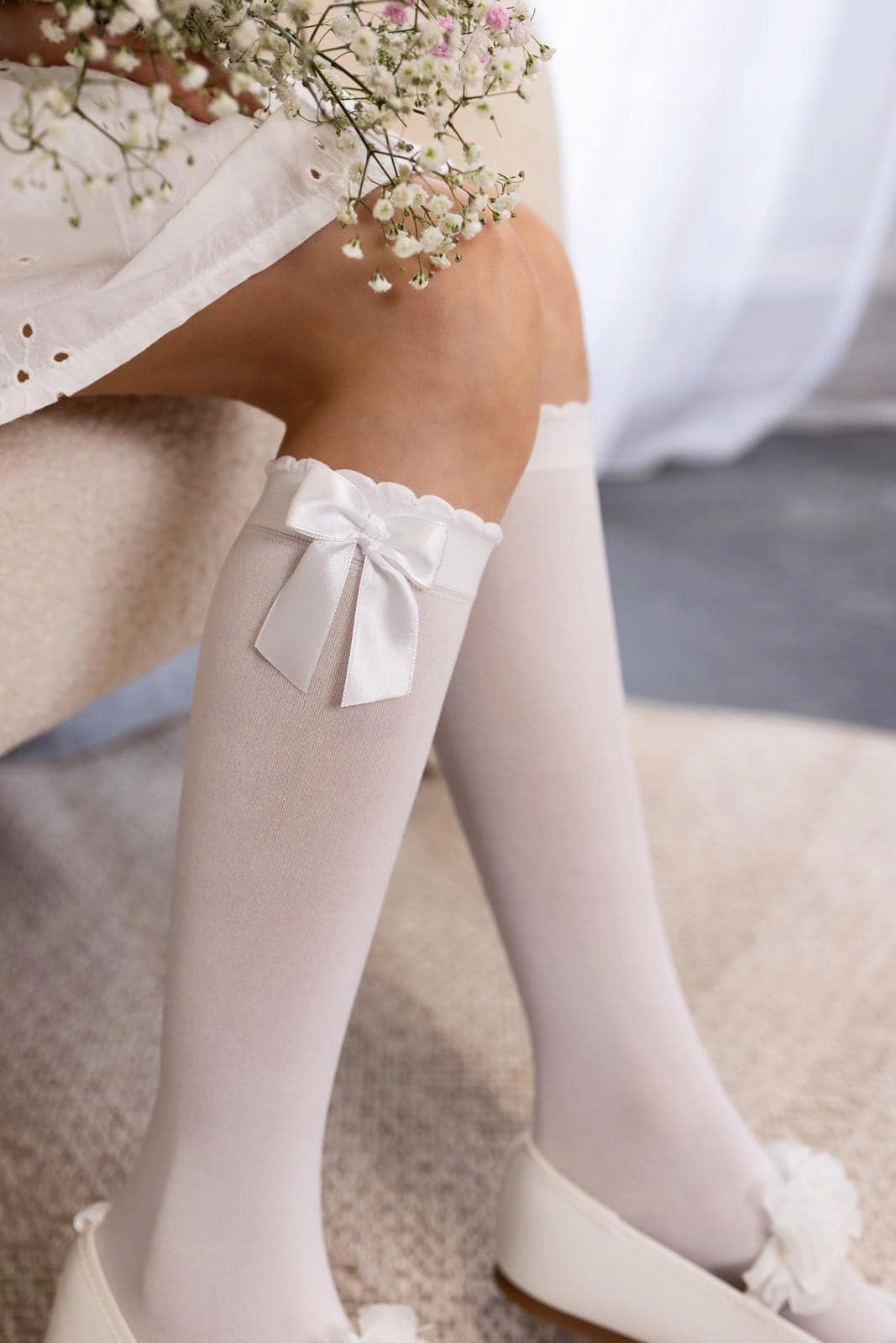 Білі дитячі шкарпетки з коліна, виготовлені з мікрофібра з білим луком 5-9 років Funpol