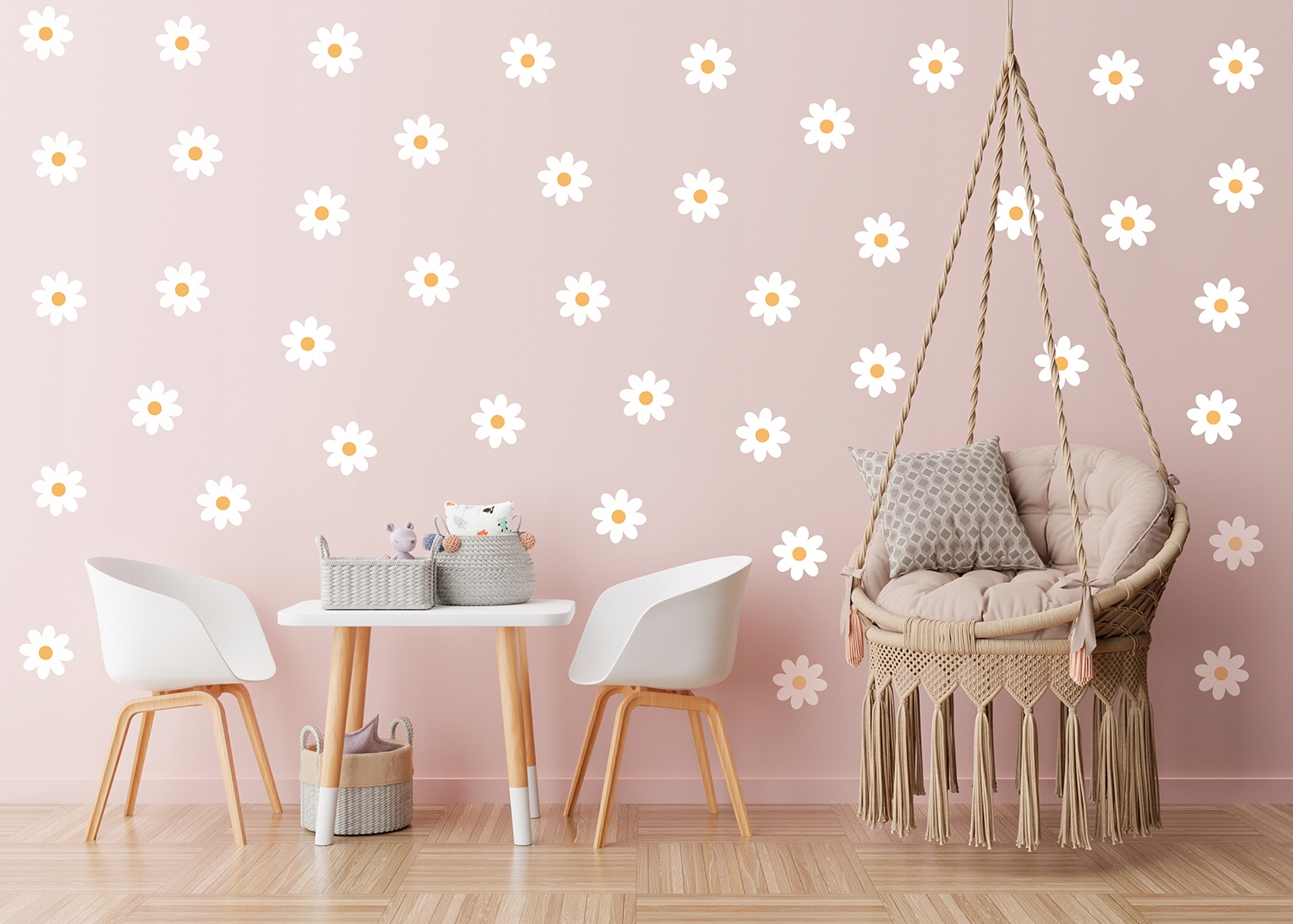 Унікальні наклейки на стіну - набір з 50 білих квітів / ромашок, які чудово прикрасять будь-яку стіну!