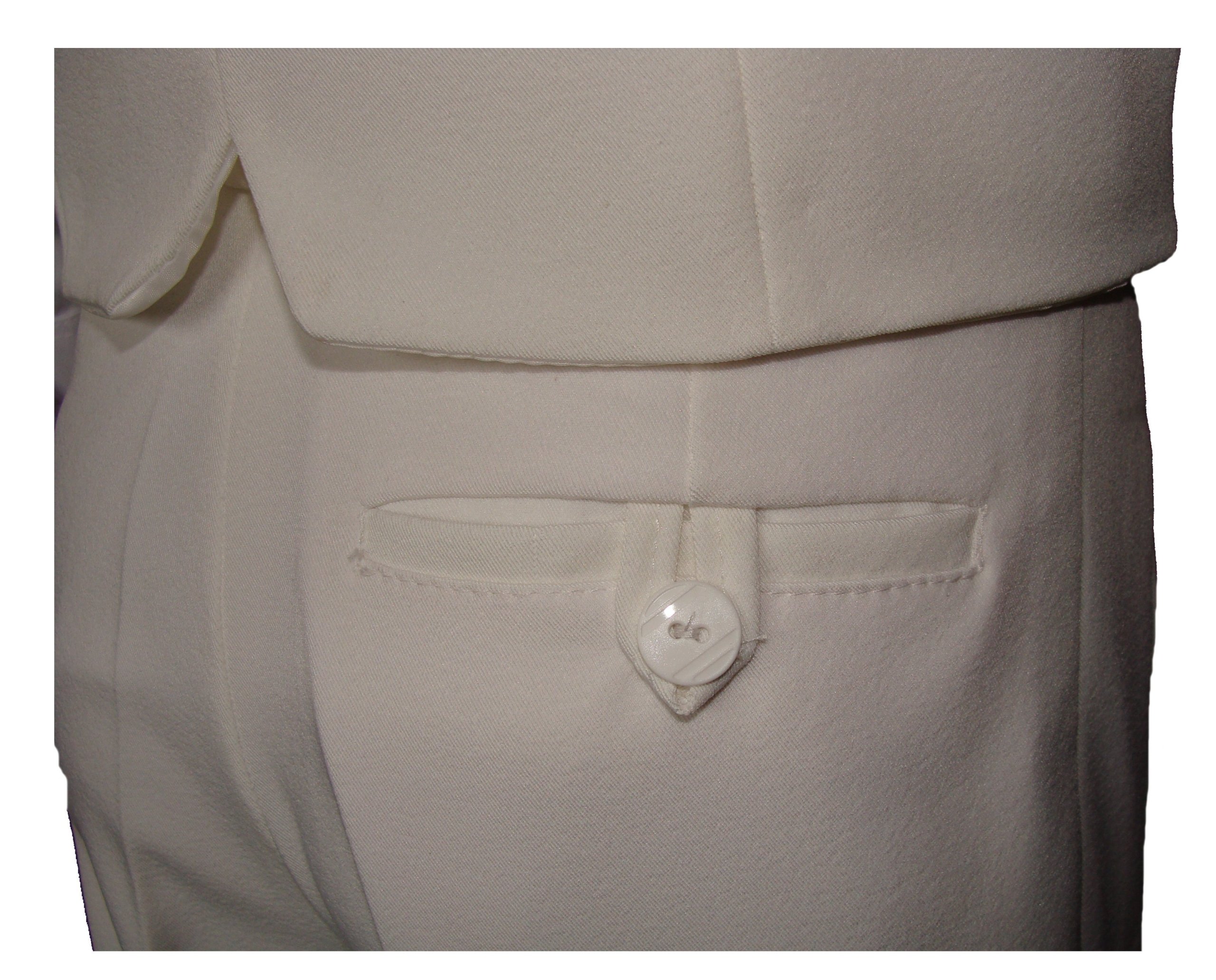 Штани мають з обох боків додаткові клапани з двома гудзиками, які дозволяють регулювати ширину талії. Ми використали це рішення, відмовившись від гумок, оскільки вони за визначенням повинні бути молодіжними формальними брюками, тому швидше за все першими справжніми брюками для вашого хлопця.