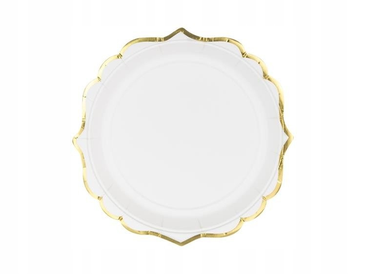 Тарілки круглі паперові зі злегка хвилястими золотими краями .