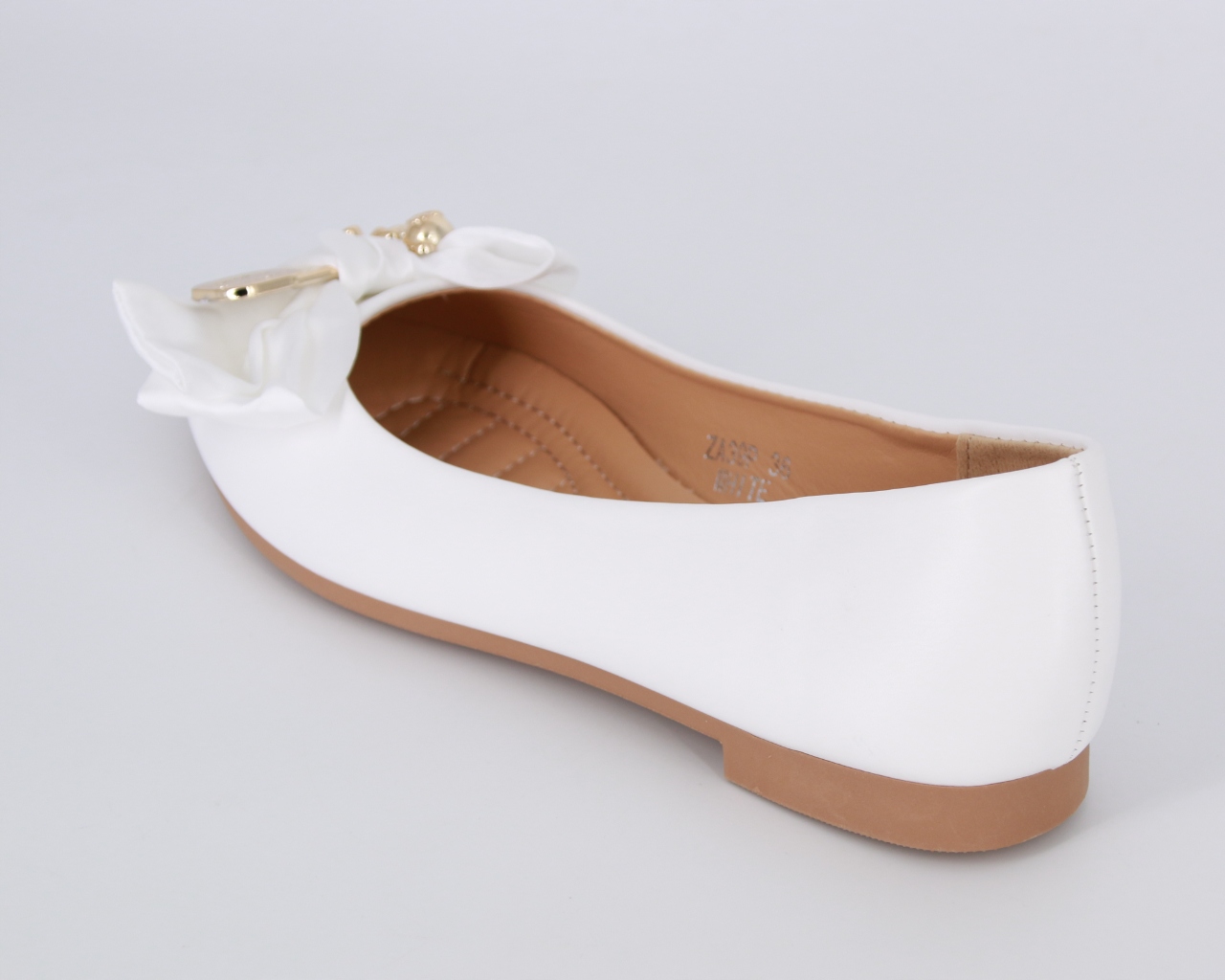 БІЛІ ШКІРЯНІ ЖІНОЧІ БАЛЕТКИ З БАНТИКОМ ЗОЛОТОГО ВЕДМЕДЖА 40