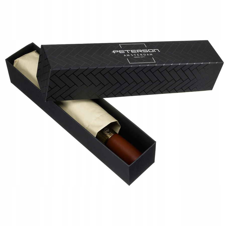 Парасолька продається в естетичній фірмовій коробці з логотипом Peterson®️. Це практична та елегантна ідея подарунка для тих, хто цінує стиль, якість і надійність - незалежно від погоди.