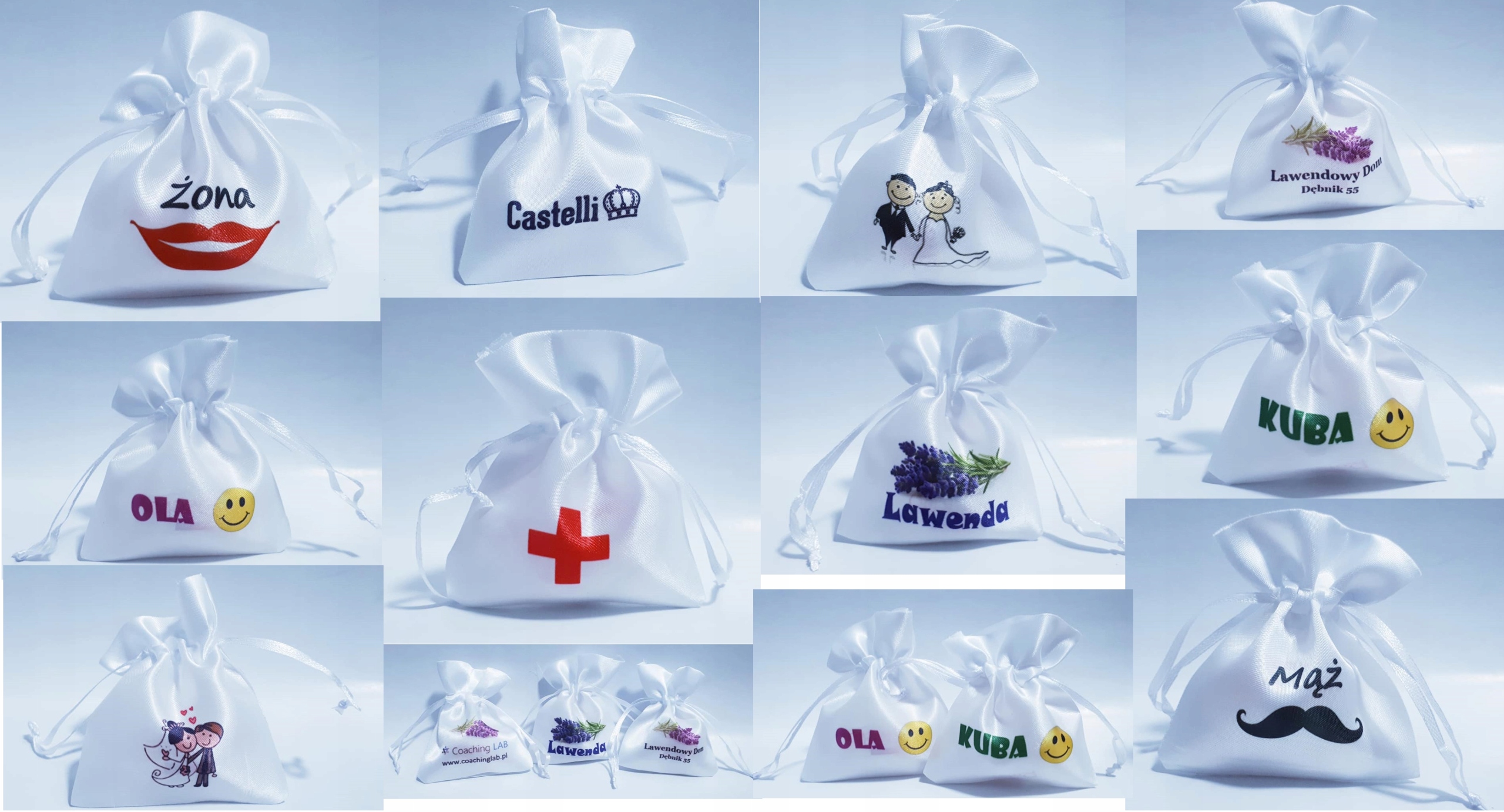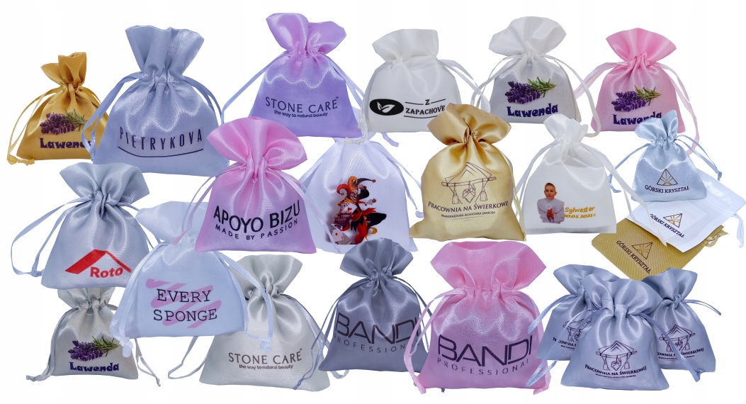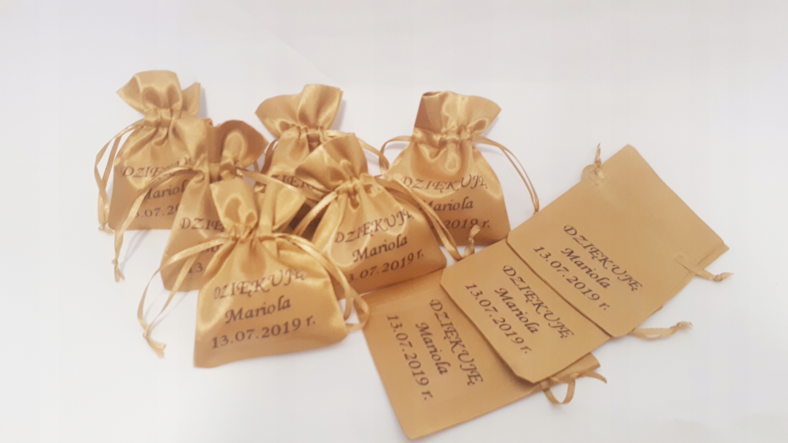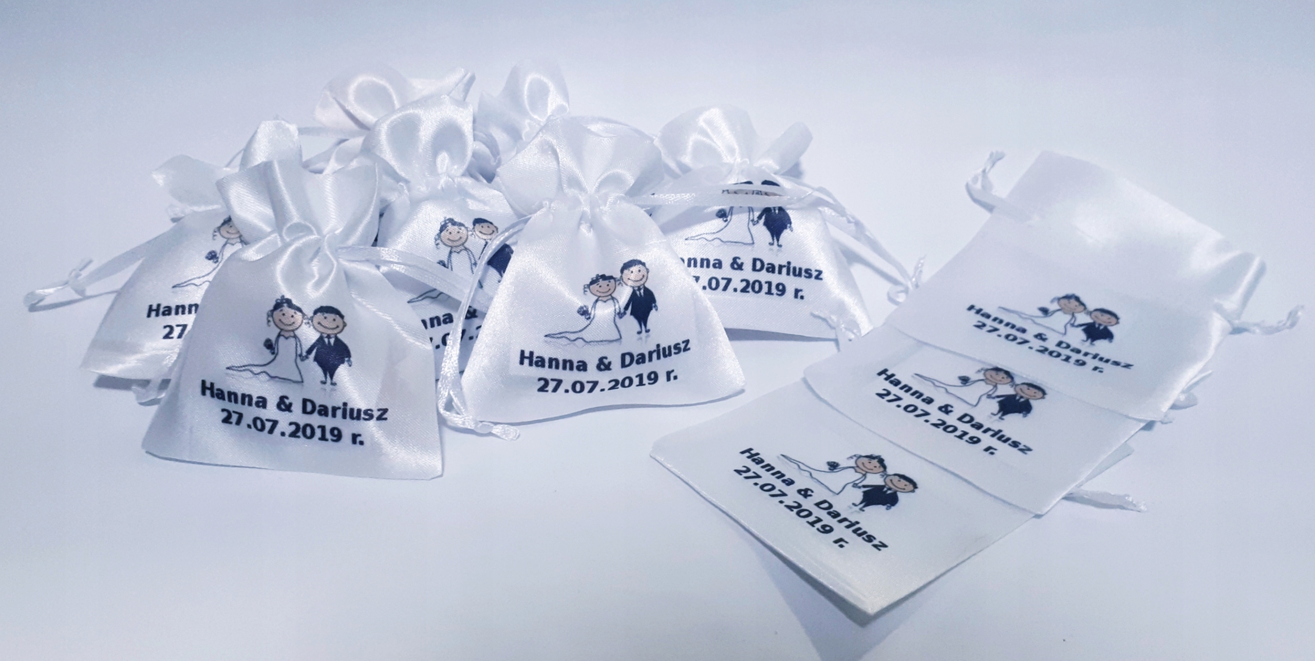 Сатіновими мішками характеризується дуже стильним виглядом з ніжним сяйвом, оскільки вони злегка відображають світло, вони також дуже приємні на дотик. Ця комбінація змушує сатинові сумки викликати інтерес на перший погляд, який з часом лише збільшується - тому що і як ви не можете зацікавити елегантний матеріал, який є делікатним. Сумка може подякувати гостям весілля, просто покладіть щось солодке. - той самий друк. Замовлення: