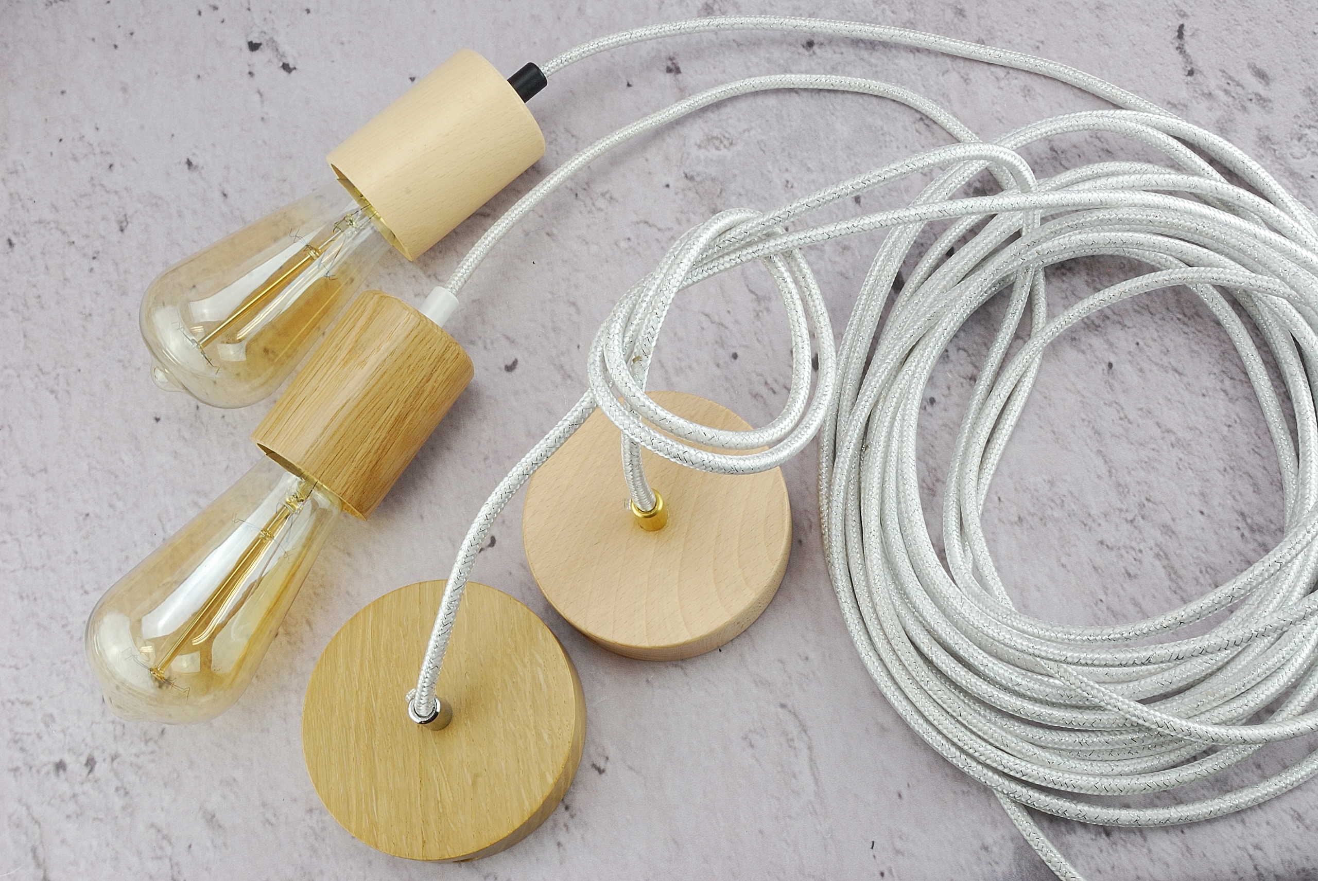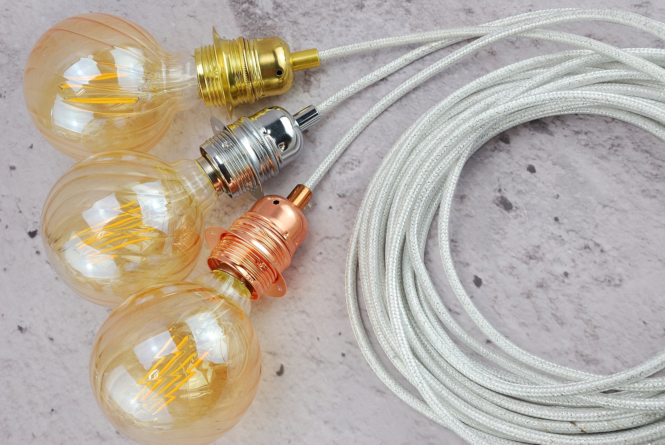 Білий блискучий кабель в плетеному металізованому павутинному горищному лампі DIY DIY