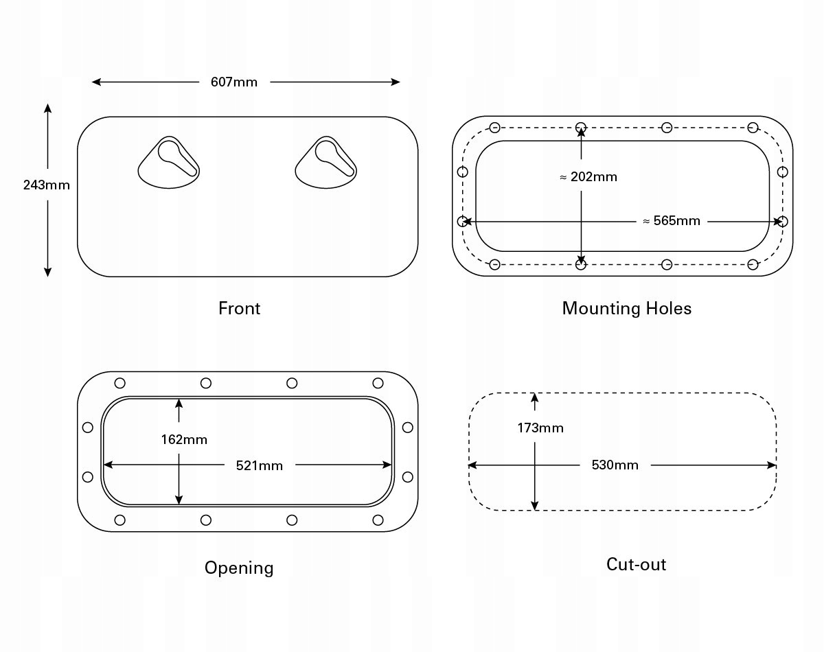 - Монтажний отвір 173 x 530 мм
