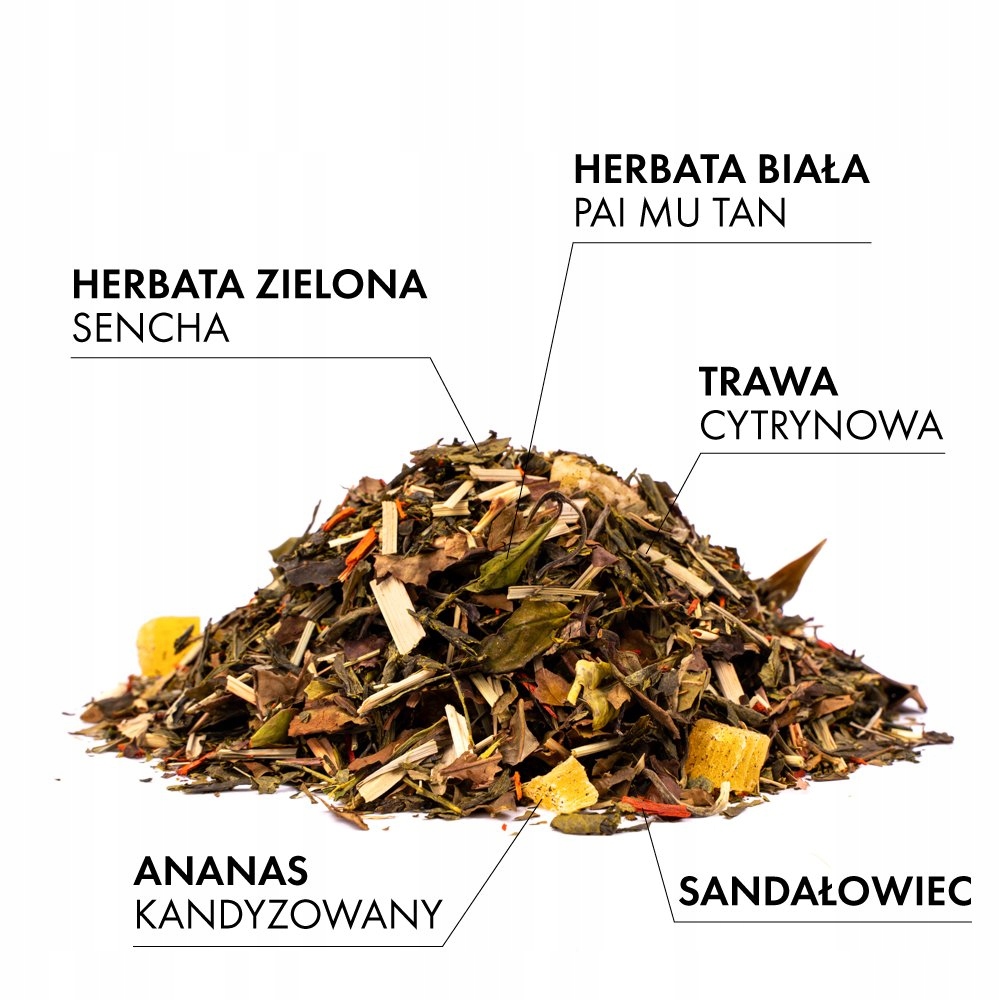 Etna — це надзвичайна композиція із зеленого чаю Sencha та білого чаю Pai Mu Tan, збагаченого ананасовими цукатами, лемонграсом і сандаловим деревом. Поєднання цих інгредієнтів створює настій, повний свіжості, легкості та глибини - з екзотичним ароматом та унікальними оздоровчими властивостями.