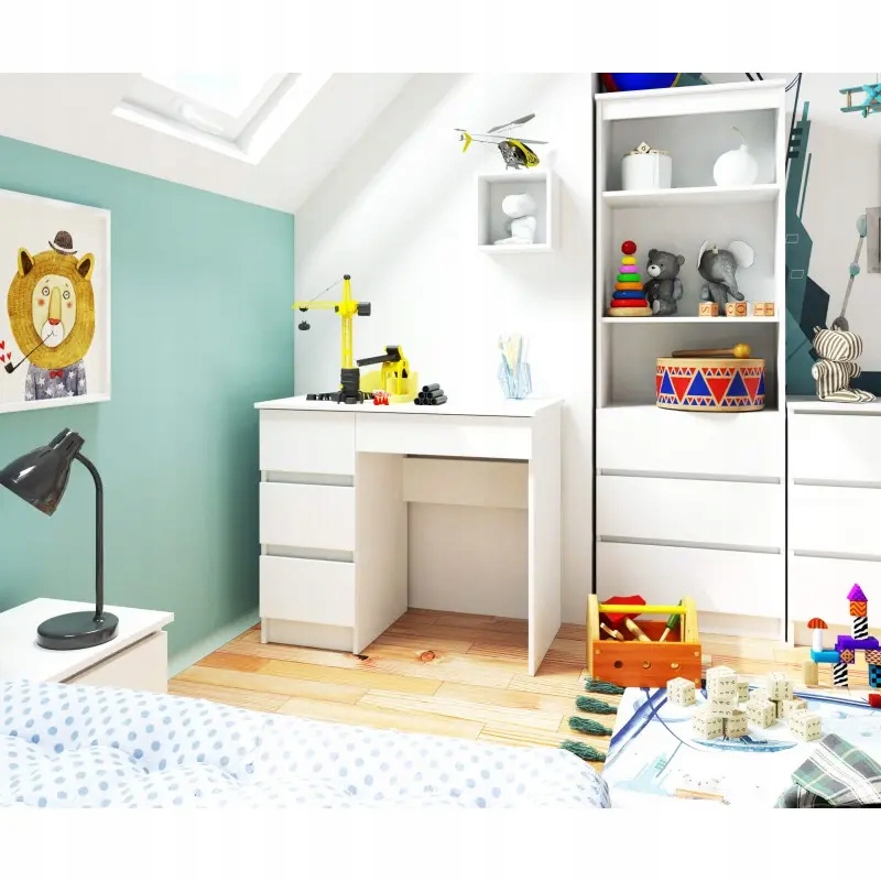 Білий дитячий стіл 90 см з 4 місткими ящиками