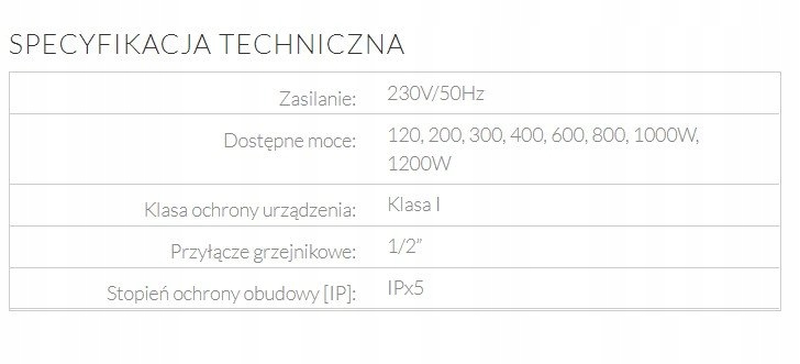 Довжина обігрівача залежить від його потужності - розміри наведені в таблиці нижче -