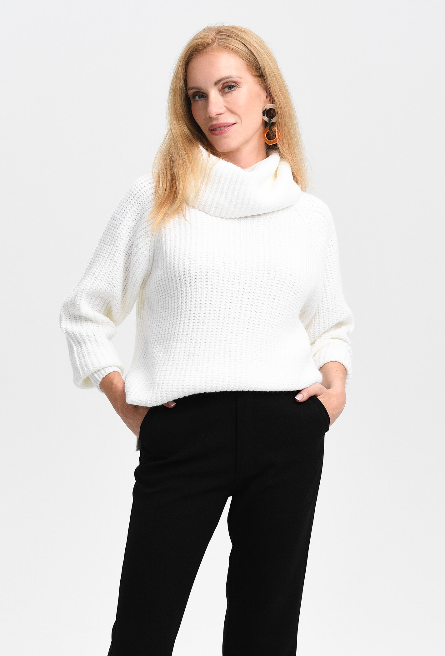 - Светр з пухким розрізаним водолазкою. Довгі рукави, опущена лінія плечей. Ця універсальна модель ідеально підходить як для холодного осіннього зиму, так і для обкладинки, наприклад на літні вечори. Це обов’язково у вашому гардеробі! Модель доступна у трьох кольорових версіях. Модель на малюнку висотою 179 см і представляє розмір 36.