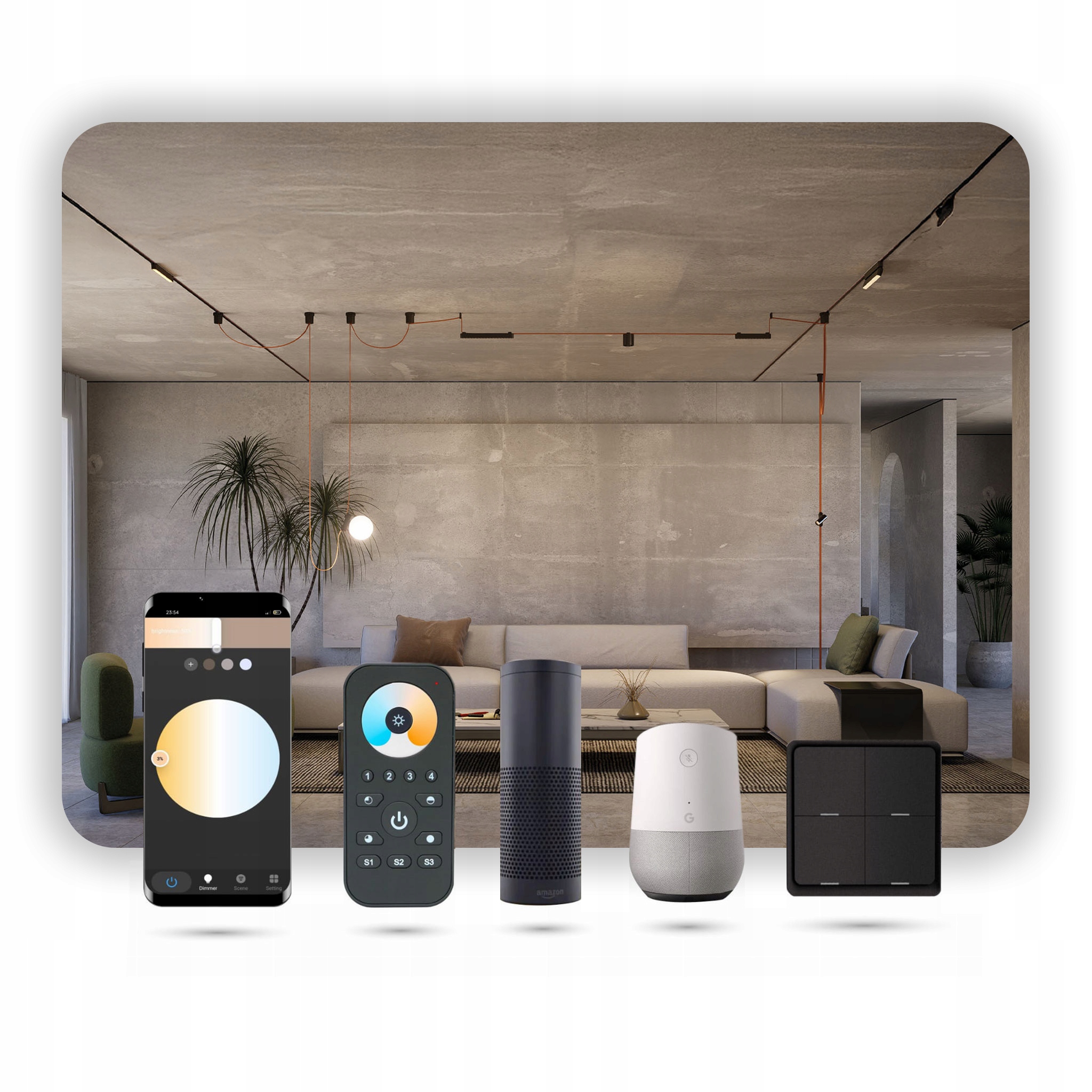 Система рейки SLIM TRACK пропонує широкі можливості адаптації освітлення до індивідуальних потреб завдяки сучасним рефлекторам. Джерела світла, оснащені модулем Zigbee, дозволяють дистанційно керувати за допомогою мобільного додатку Tuya або SmartLife, дозволяють просто контролювати яскравість і світлий колір зі смартфона.